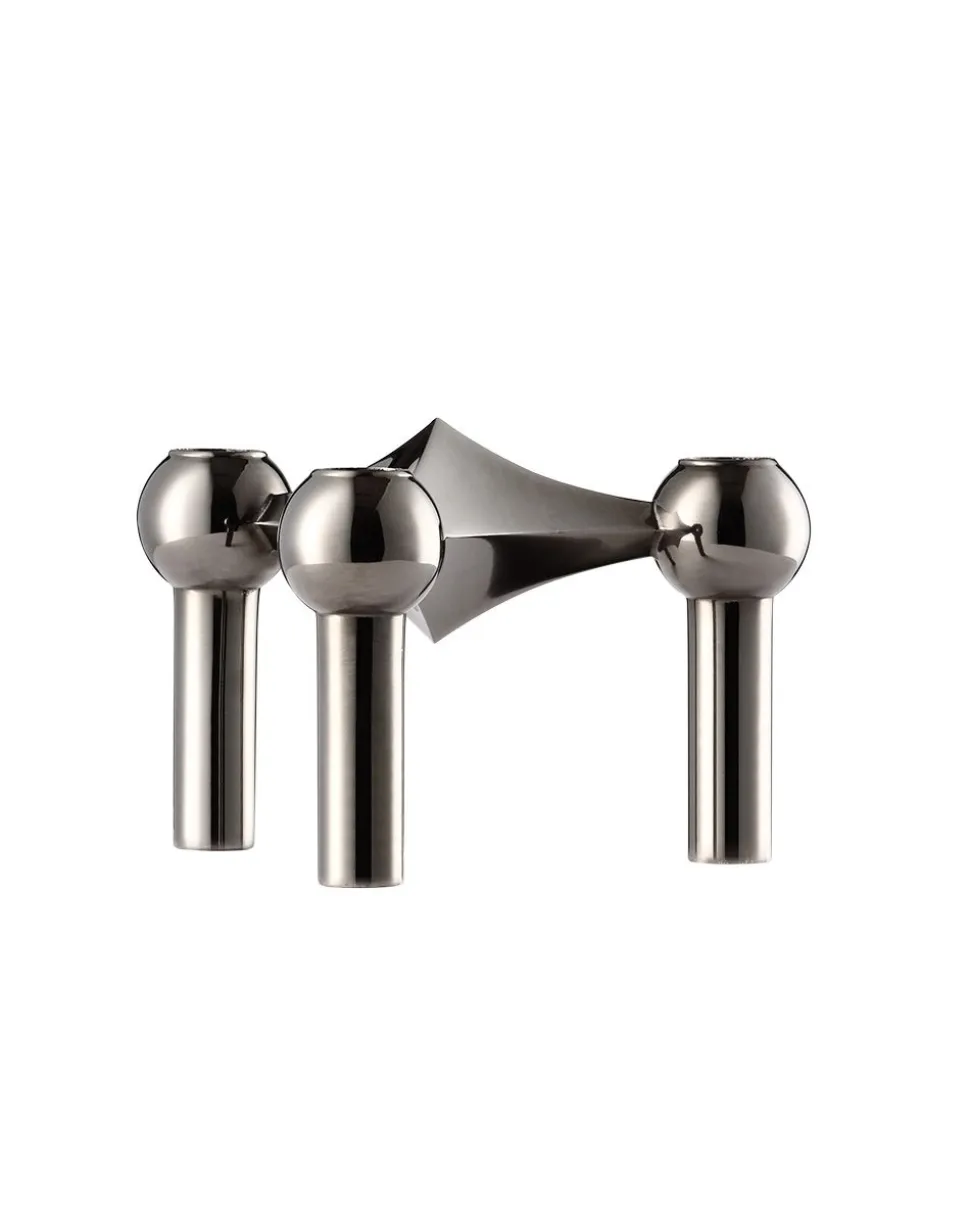 Der Nagel Kerzenhalter ist ein zeitloser Klassiker, der Kunst und Funktionalität zu einer skulpturalen Einheit verschmilzt. Entworfen von Werner Stoff in Zusammenarbeit mit Hans Nagel im Jahr 1965, strahlt dieser ikonische Kerzenhalter modernistische Eleganz und Individualität aus. Mit seinen drei Stangen und der stromlinienförmigen Chromoberfläche bringt er einen Hauch von Designästhetik aus der Mitte des Jahrhunderts in jedes Zuhause. Die modulare Konstruktion ermöglicht es Ihnen, mehrere Nagel-Kerzenhalter zu kombinieren und individuell zu gestalten, um Ihre eigene persönliche Skulptur zu schaffen – mit oder ohne Kerzen. Eine perfekte Kombination aus Form und Funktion, die Ihre Inneneinrichtung auf ein neues Niveau hebt.