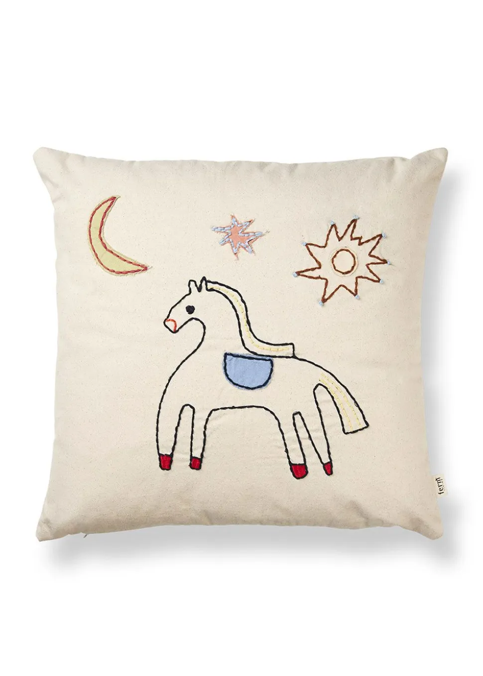 Das Naive Cushion von ist ein festliches Kissen, das Farbe und Freude in jeden Raum bringt. Mit seiner einzigartigen Kombination aus Mustern und Farben zieht dieses Kissen die Aufmerksamkeit auf sich und verleiht jeder Einrichtung einen Hauch von Leichtigkeit. Die schönen gestickten Motive schmücken die Vorderseite und schaffen ein visuelles Gefühl von Leichtigkeit und Bewegung.