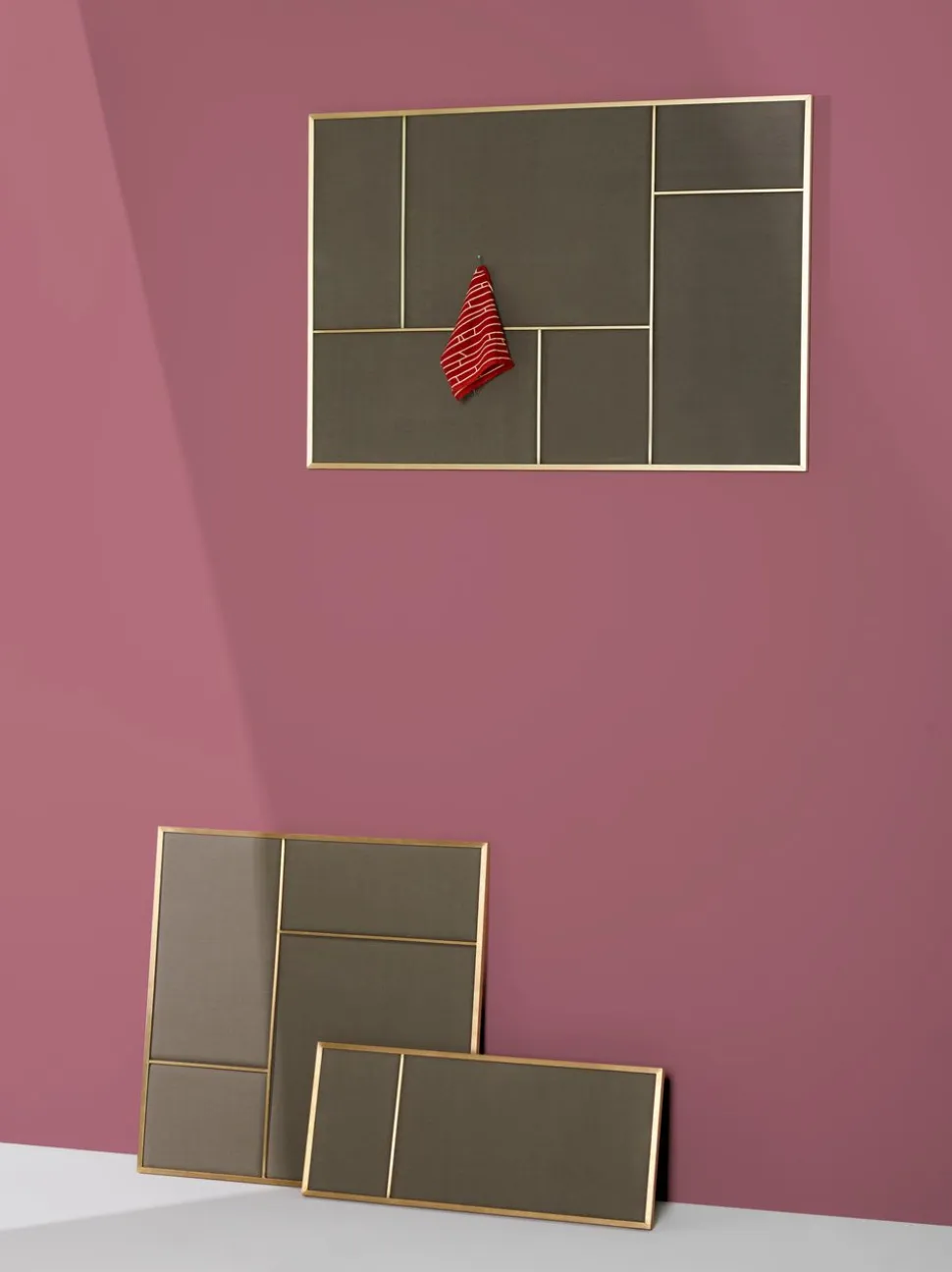 Funktional bietet die Nouveau Pin mehr als nur einen Platz zum Anheften Ihrer Lieblingsfotos, Konzertkarten oder wichtigen Erinnerungen. Seine schallabsorbierenden Eigenschaften machen ihn zu einer praktischen Ergänzung für jede Umgebung, in der Geräuschdämpfung von Vorteil ist. Das Design der Pinnwand ist von den geraden Linien moderner Strukturen und dem künstlerischen Stil des Jugendstils inspiriert und verbindet Funktionalität mit Ästhetik.