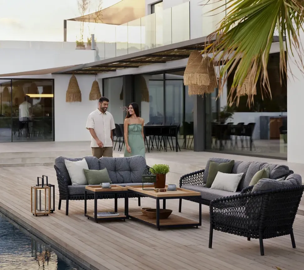 - Materialien Der Rahmen des Sofas besteht aus Alimunium und ist entweder mit Soft rope oder flat weave bezogen.