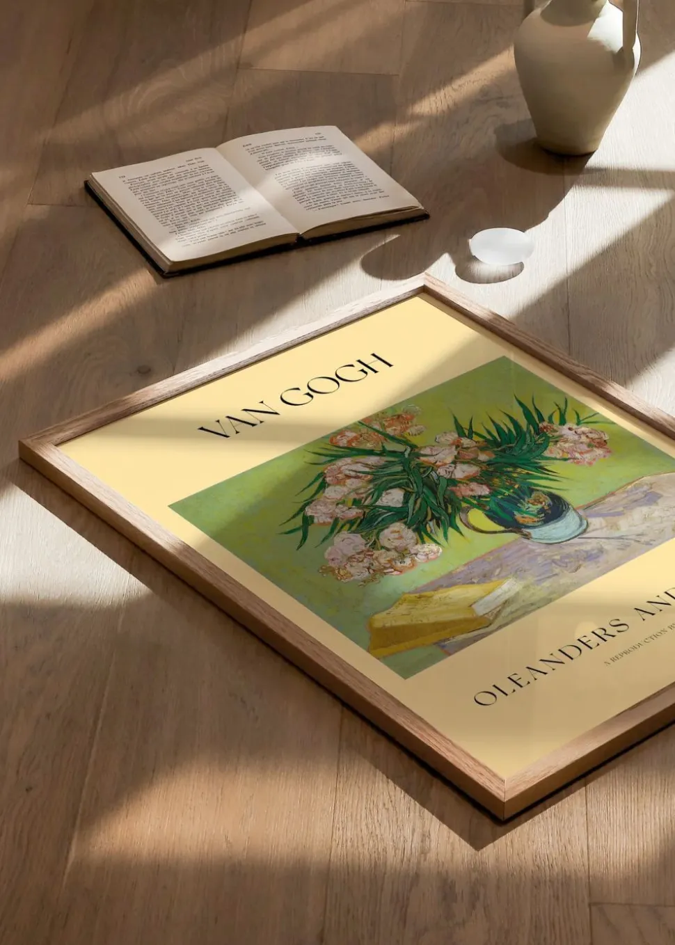 Das Kunstplakat Oleanders and Books von Vincent van Gogh ist ein außergewöhnliches, gemaltes Plakat, das von neu aufgelegt wurde. Oleander und Bücher ist Teil der schönen Vintage-Kollektion von mit musealer Aufmachung.