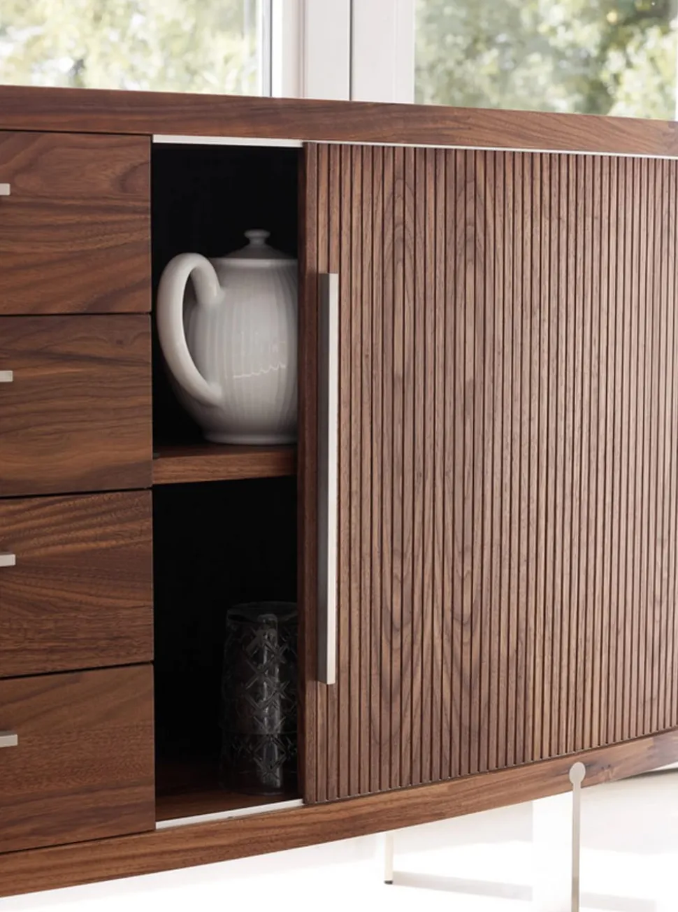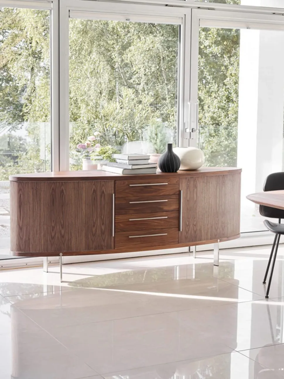 Das ovale Sideboard AK1300 wertet jeden Raum durch seine Mischung aus Form und Funktion auf. Verwenden Sie es im Esszimmer, um Geschirr und Wäsche aufzubewahren, oder stellen Sie es ins Wohnzimmer, um Bücher und Dekoartikel zu organisieren. Kombinieren Sie es mit anderen Stücken aus der Naver-Kollektion, um ein stimmiges Raumkonzept zu schaffen. Das schlichte Design und die hochwertigen Materialien sorgen dafür, dass das Regal zu einem echten Hingucker wird, der Ihrem Zuhause sowohl Stil als auch Stauraum verleiht.