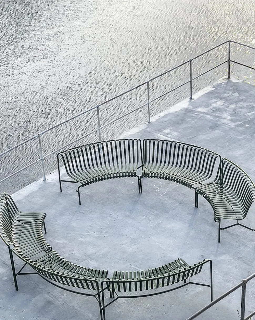 Die Pallisade Bank von ist ein Entwurf des französischen Duos Ronan und Erwan Bouroullec. Die Bank ist in Module unterteilt und durch die Kombination von mindestens zwei Modulen können verschiedene individuelle Seitenanordnungen geschaffen werden.