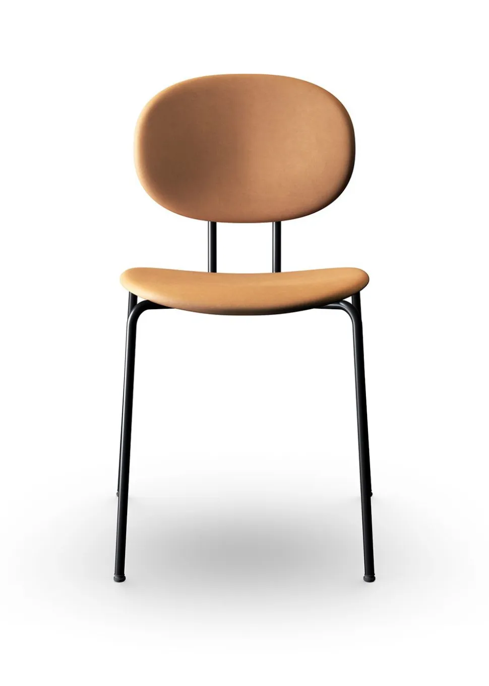 Der Dining Chair geht direkt auf den Superellipse-Tisch zurück. Die berühmte Ellipsenform, die in vielerlei Hinsicht von Piet Heins mathematischem Genie und seiner wissenschaftlichen Herangehensweise an harmonisches Design zeugt, wurde bei diesem Esszimmerstuhl leicht modifiziert, um sich den menschlichen Proportionen anzupassen. Ein leichter Schwung in der Rückenlehne verleiht dem Stuhl einen hohen Sitzkomfort, ohne die ikonische Ellipsenform zu provozieren. Mit einer Polsterung aus luxuriösen Stoffen und Leder erhält der Stuhl eine zusätzliche Dimension der Exklusivität. Das weiche Textil in Kombination mit dem harten Metall des Gestells schafft das dynamische visuelle Gleichgewicht, für das bekannt war.