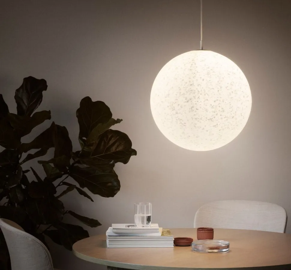 DiePix-Lampen sind eine Verschmelzung zwischen der klassischen Kugellampe mit ihrem runden Design und einer modernen, verantwortlichen Produktion. Die Lampen bestehen aus recyceltem Kunststoff, der eine pixelige Oberfläche erzeugt, die das Licht im Raum schön verändert. Das Material der Lampe hat eine halbtransparente Qualität, die ein diffuses Licht und eine warme Atmosphäre im Raum erzeugt. Pix ist in verschiedenen Größen erhältlich, so dass die Leuchte sowohl in einer einzelnen Ecke als auch in einem großen Flur eingesetzt werden kann.