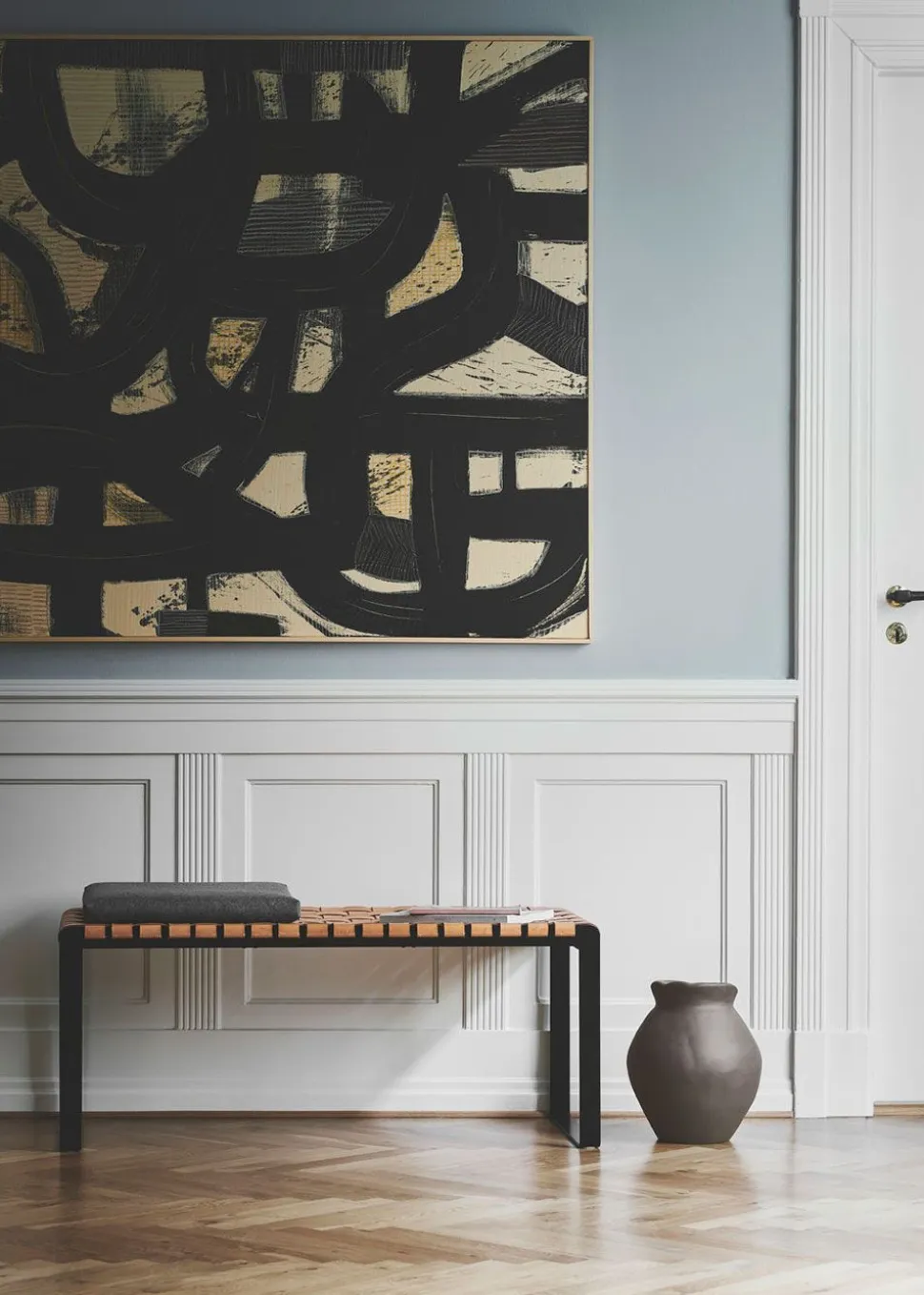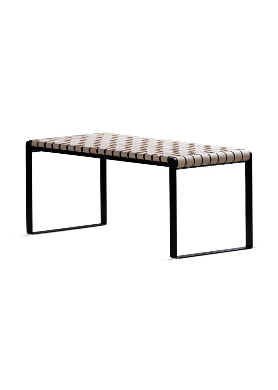 Geflochten wird von hergestellt. Die Bank ist perfekt für die Eingangshalle, wo sie zum Sitzen verwendet werden kann, wenn Sie Ihre Schuhe binden. Der Sitz ist entweder aus schwarzem Nylon oder Narbenleder in Schwarz oder Natur, und der Rahmen ist aus schwarz pulverbeschichtetem Stahl gefertigt.