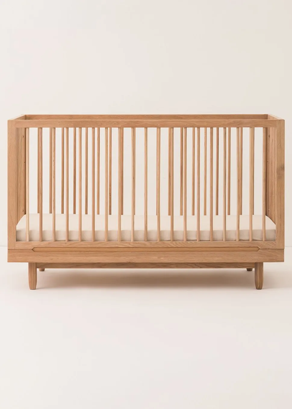 Das Pure Evolving Crib ist das perfekte Kinderbett, um die Entwicklung Ihres Kindes mit Stil zu begleiten. Das Bett ist aus massiver amerikanischer Eiche gefertigt und mit einer eleganten, matten Oberfläche versehen. Es ist mit sorgfältig gearbeiteten Details wie Bleistiftkanten und runden Beinen im Stil der 50er Jahre ausgestattet. Der höhenverstellbare Lattenrost und das gelochte Holzbrett sorgen für Komfort und Sicherheit für Ihr Kind.