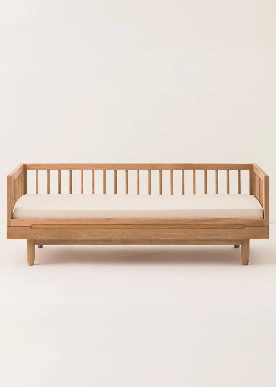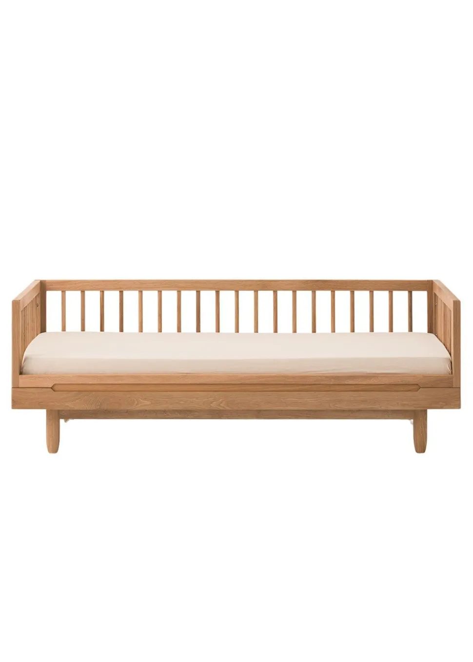 Das Pure Junior Bett ist das perfekte Übergangsbett für kleine Kinder, die bereit sind, wie die Großen zu schlafen. Dieses aus massiver amerikanischer Eiche gefertigte Kinderbett hat eine niedrige Höhe, damit sich Kinder sicher und wohl fühlen. Die elegante, matte Oberfläche, die weichen Kanten und die abgerundeten Beine im Stil der 50er Jahre wurden sorgfältig verarbeitet, um eine hohe Qualität zu gewährleisten. Mit seinem zweifarbigen Design findet das Pure Junior Bett immer einen Platz in jedem Zuhause.