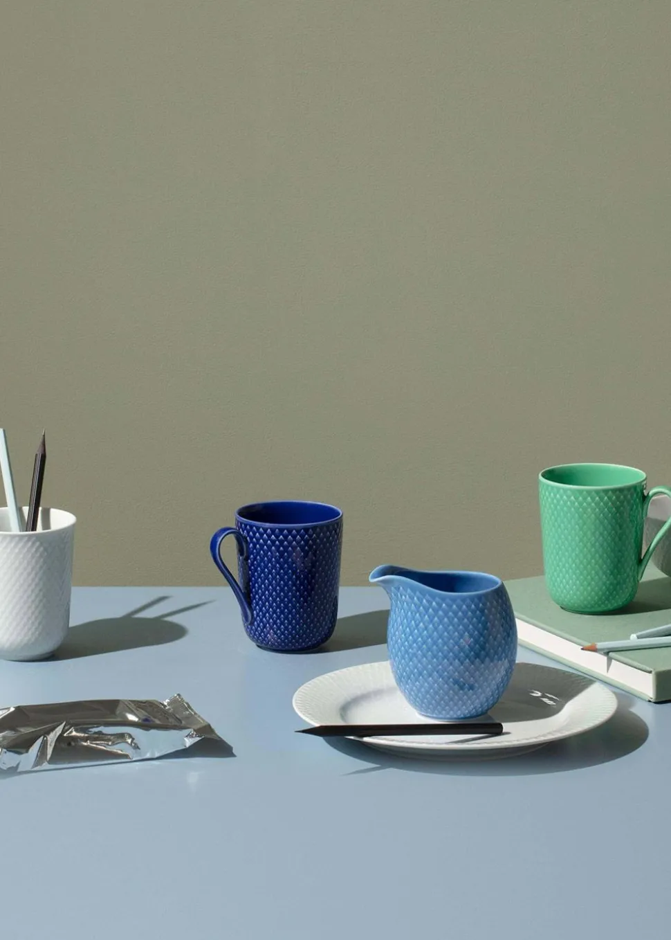 Der Rhombe-Milchkrug von ist aus glänzend glasiertem Porzellan hergestellt, hat eine sehr charakteristische Form und einen klassischen Ausgießer, der das Ausgießen erleichtert.