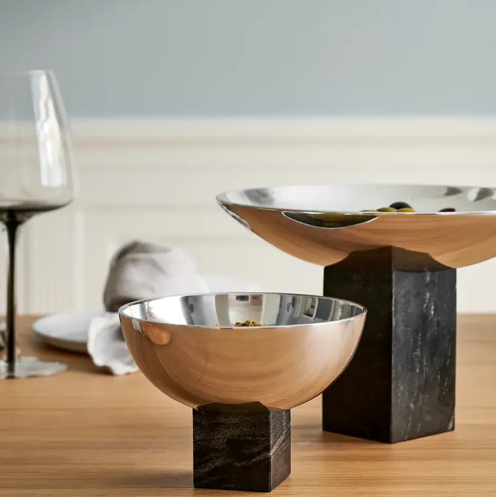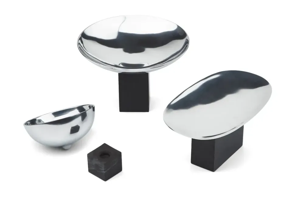 Sapoto sind elegante Schalen von . Die Schalen sind in zwei verschiedenen Größen erhältlich, einem kleinen und einem mittelgroßen Modell. Die Sapoto-Schalen sind in Schwarz und Silber gehalten, was für ein elegantes Finish sorgt. Das Wort Sapoto ist japanisch und bedeutet „mit Unterstützung“. Das weiche Sandgussaluminium ist elegant poliert und mit einem einzigartigen Marmorstein kombiniert, der dem Raum sofort ein stilvolles Aussehen verleiht. Die Schalen eignen sich perfekt als elegantes Kunstwerk für das Wohnzimmer. Sie lassen sich auch leicht in der Küche als einzigartige Obstteller aufstellen.