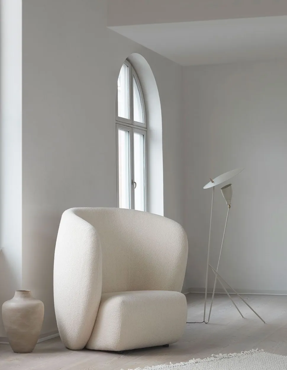 Die Leuchte ‚Silhouette‘, entworfen vom dänischen Beleuchtungsmeister Svend Aage Holm-Sørensen, ist mit ihrem einzigartigen und ikonischen Design ein bemerkenswertes Beispiel für Holm-Sørensens kreativen Sinn für zeitloses und experimentelles Design. Mit ihrem asymmetrischen Design nimmt die elegante Struktur einen skulpturalen Ausdruck an, der auch ohne Licht ein auffälliges Meisterwerk in der Wohnung ist. Die kleine Stehlampe erzeugt im Zusammenspiel mit dem breiten Metallschirm ein warmes, diffuses Licht, das den Raum um sie herum in einem gemütlichen, einladenden Schein erhellt. Klassische Farben, exklusive Messingdetails und verspielte Linien tragen zum künstlerischen Eindruck der „Silhouette“-Lampe bei, der der Epoche des Designs treu bleibt.