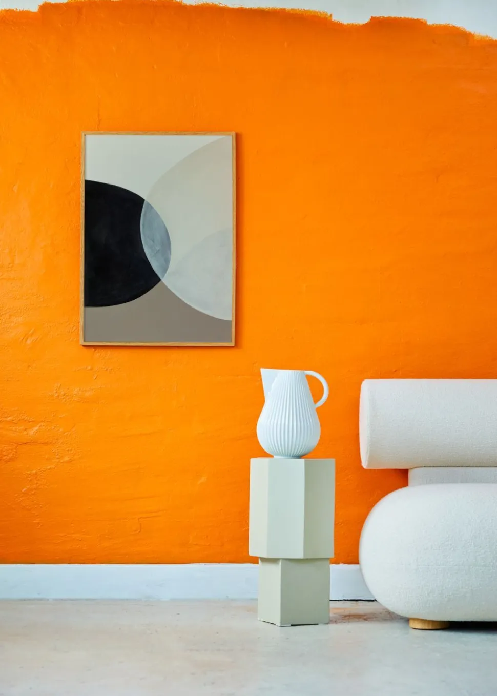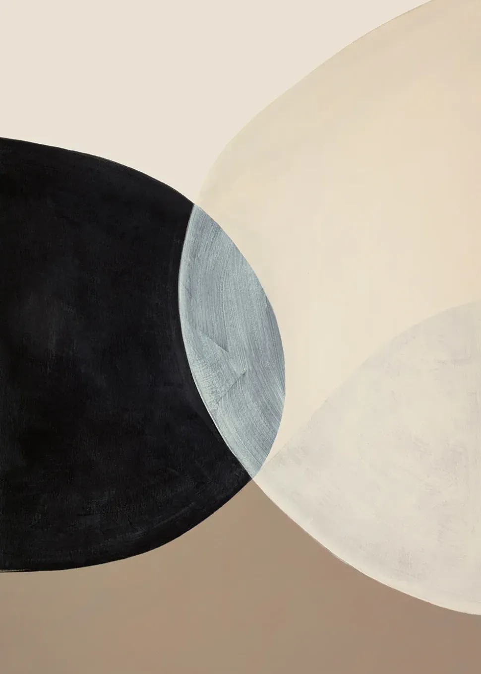 Berit hat betont, dass die Plakate beruhigende, handgemalte Formen mit einer Reihe von neutralen Tönen haben sollten. Die beiden Bilder ergänzen sich gut, denn sie haben das gleiche Design, nur mit anderen Formen. Die Plakate kombinieren schöne Farbtöne in einer einzigartigen Kombination. Die schönen Farbtöne bringen die kreativen Grundformen zur Geltung.