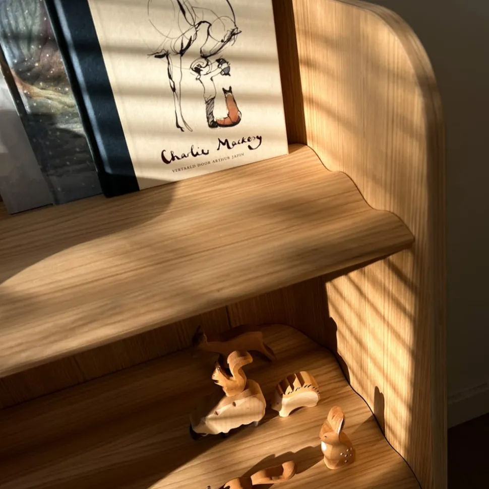 Das Small Curvy Bücherregal von Curvelab ist die perfekte Kombination aus verspieltem Design und Funktionalität. Mit seinen weichen Kurven und schönen Holzoberflächen verleiht dieses Bücherregal jedem Kinderzimmer eine elegante und zugleich lustige Dimension. Das aus verantwortlichem Holz gefertigte Bücherregal ist nicht nur umweltfreundlich, sondern auch langlebig und sicher für kleine Hände. Dieses Bücherregal wurde mit Blick auf die Bedürfnisse von Kindern entworfen und eignet sich ideal für die Aufbewahrung von Büchern und Spielzeug bis hin zu kleinen Schätzen zum Ausstellen.