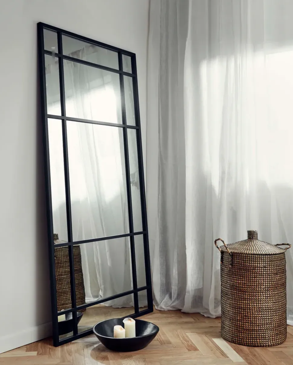 Der beliebte und elegante Spiegel SPIRIT ist in einem neutralen Holzrahmen oder in einem schwarzen oder goldfarbenen Eisenrahmen erhältlich. Der Spiegel kann auf den Boden gestellt oder an die Wand gehängt werden, horizontal oder vertikal.