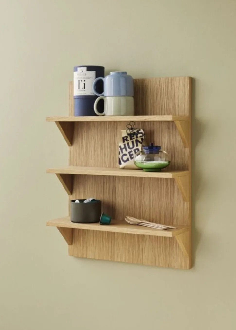 Das Straight Shelf von hat drei schöne Regalböden, die alle aus FSC-zertifiziertem Eichenfurnier gefertigt sind und ein schönes Fischgrätenmuster aufweisen. Dieses Bücherregal mit den drei schönen Fächern ist perfekt für das ganze Haus. Das Regal ist eine elegante Art, Ihre Lieblingssachen zu präsentieren.