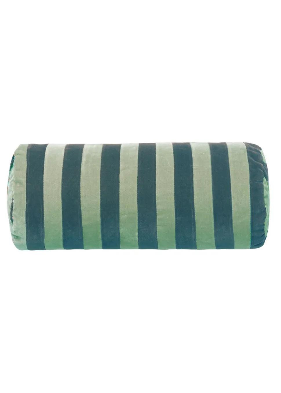 Das Kissen ist länglich mit Streifen in einzigartigen Farben.