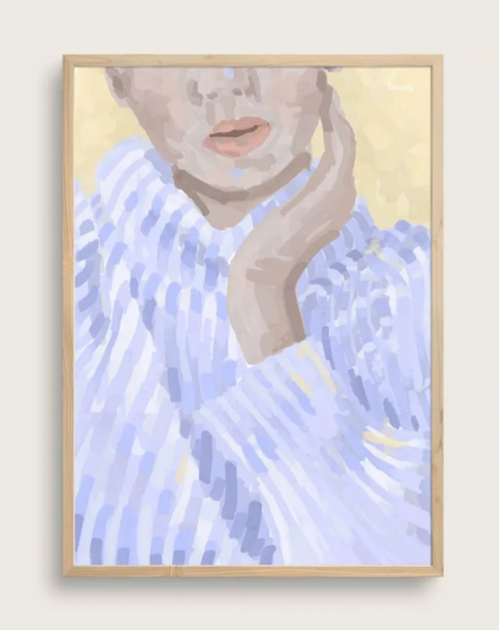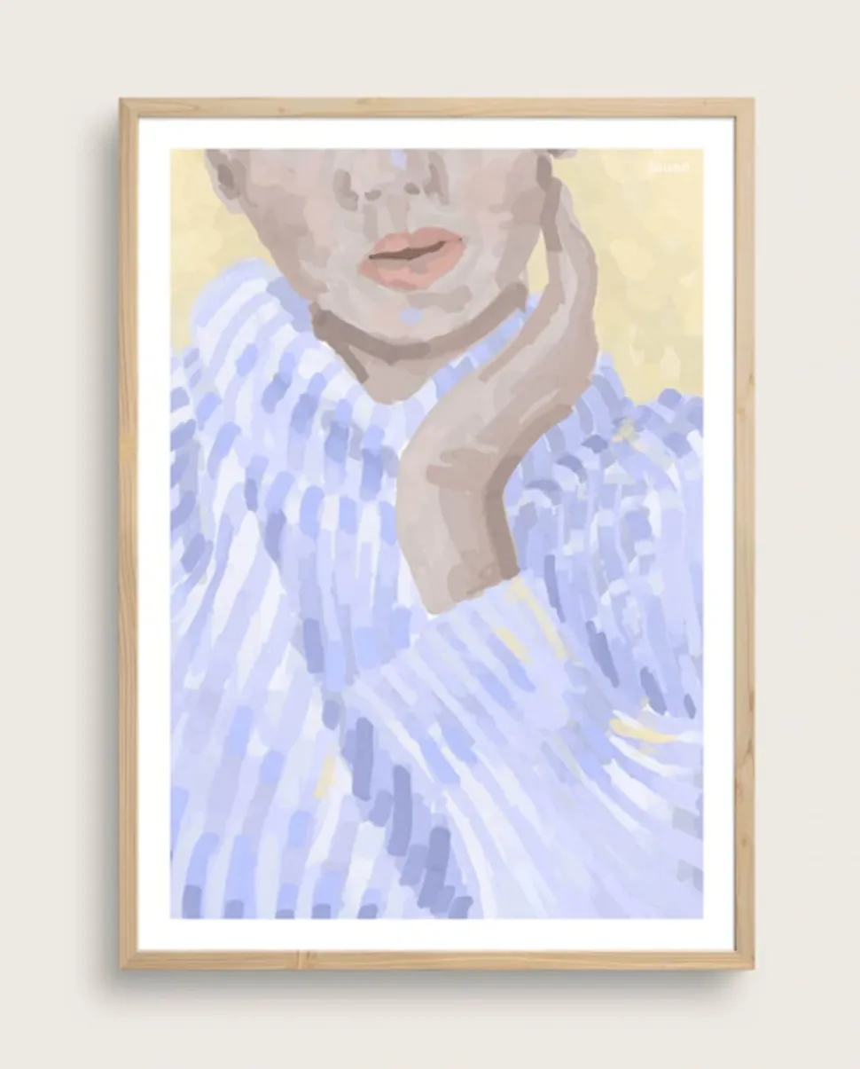 Das Plakat Strokes & Stitches #1 von Taisho ist ein sehr elegantes Plakat. Das Motiv auf dem Plakat zeigt eine Frau in einem blauen Gewand. Die Frau wird durch einen von der Gouche inspirierten Stil nach oben modelliert. Das Poster ist perfekt für die Küche, um einen stilvollen Look mit fröhlichen Farben zu schaffen. Er kann auch problemlos im Wohnzimmer aufgestellt werden, wo er sofort eine gemütliche Atmosphäre schafft. Das Poster kann leicht mit anderen Taishö-Postern kombiniert werden, um ein Farbenspiel zu erzeugen. Die Plakate sind in vielen verschiedenen Größen erhältlich, was es einfacher macht, sie in Ihre Wohnung einzubauen.