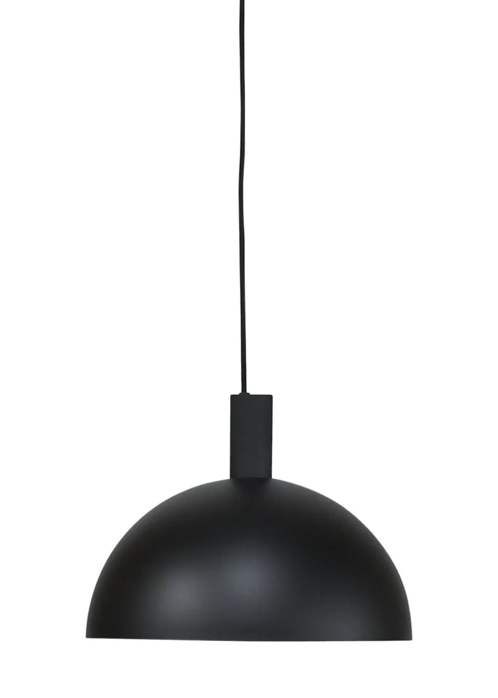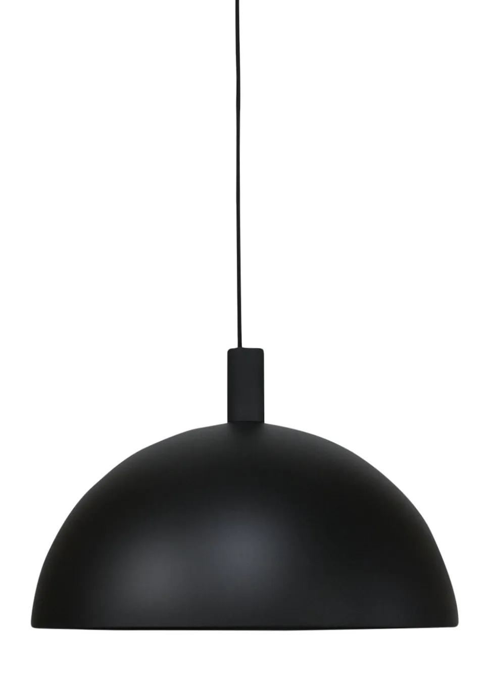 Die Studio-Hängeleuchten sind aus schwarz pulverbeschichtetem Stahl gefertigt. Die Messingdetails sind aus massivem Messing und naturbelassen.