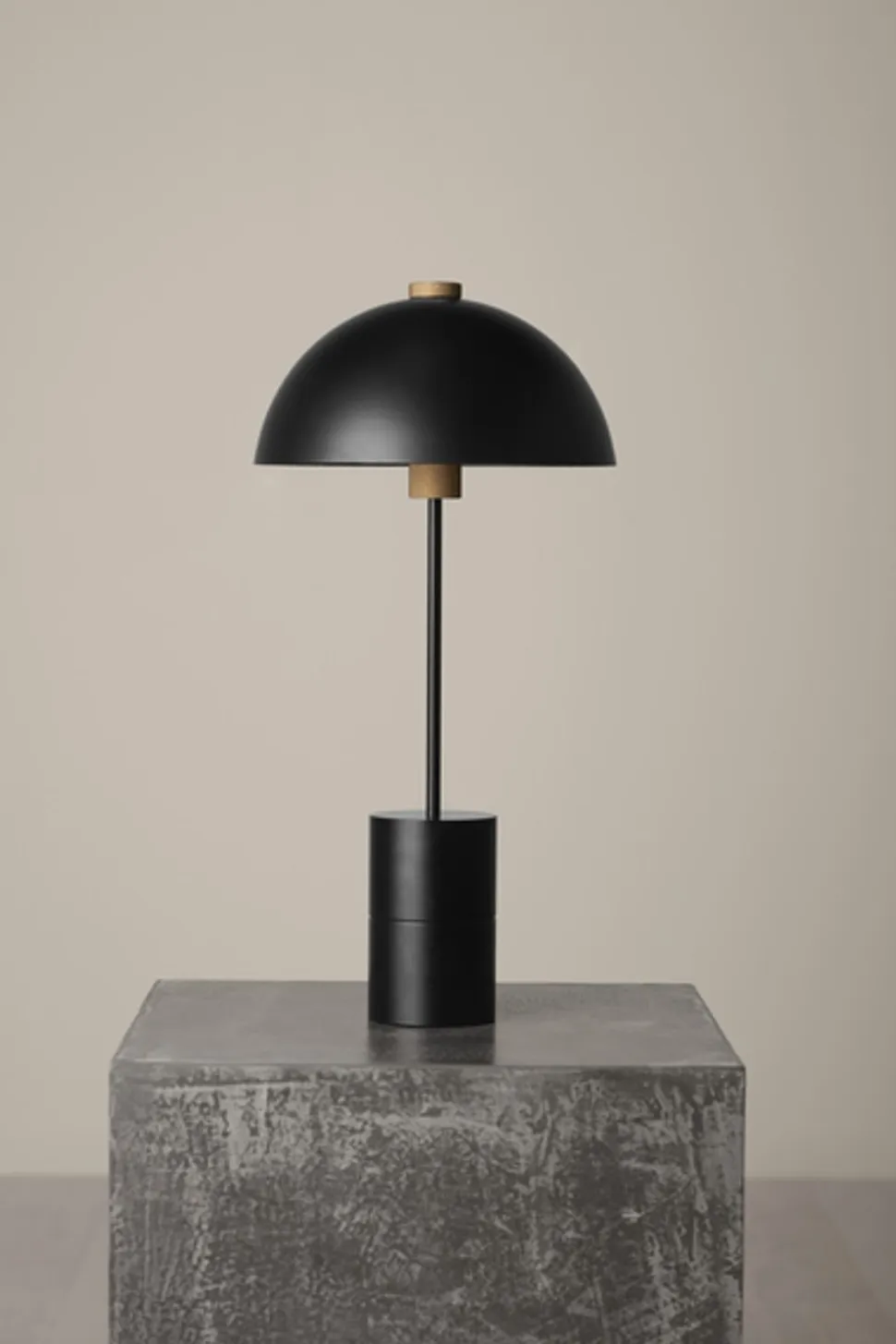 Studio-Tischleuchten sind aus schwarz pulverbeschichtetem Stahl gefertigt. Die Messingdetails sind aus massivem Messing und naturbelassen.
