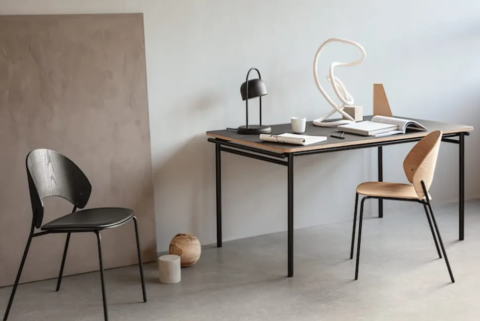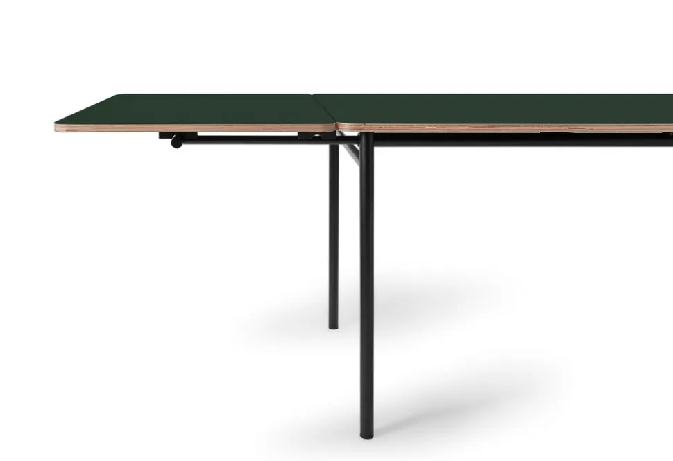 Schöner und einfacher Esstisch von . Erhältlich in vier verschiedenen Linoleumfarben und mit schwarz lackierten Beinen. So schön ein Tisch, der in jede Einrichtung passen kann, da er auch in drei verschiedenen Größen sowie dazugehörigen Verlängerungsplatten erhältlich ist.