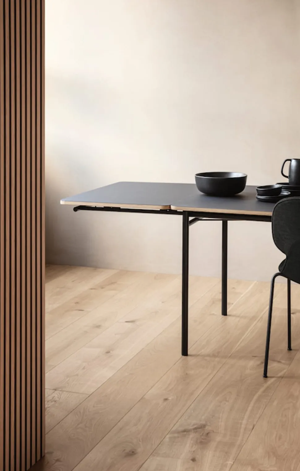 Der Tisch wird in der Größe 150 cm mit einer mitgelieferten Verlängerungsplatte geliefert und für die Tische 200 und 250 cm sind zwei zusätzliche Platten enthalten.