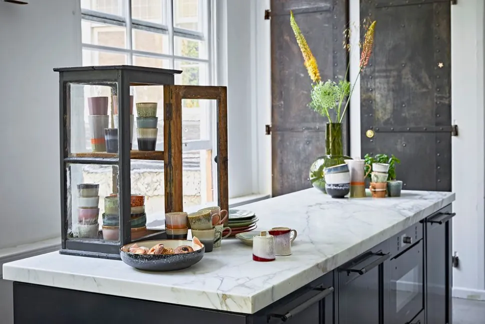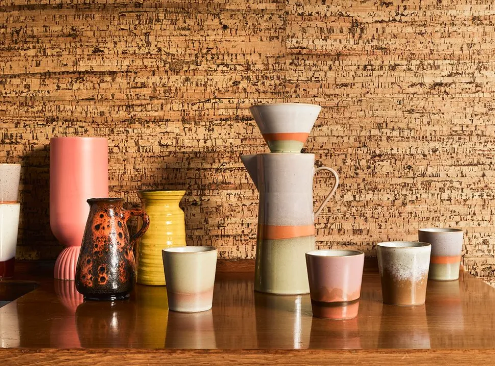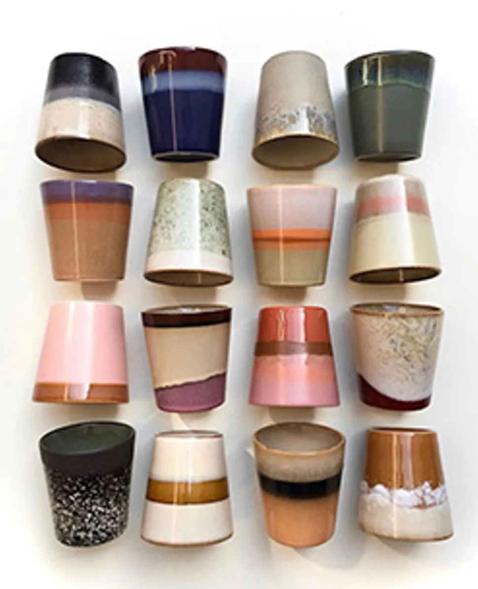 Leuchtende Farben, nostalgische Muster und einzigartige Materialien. Die 70er-Jahre-Keramik-Kollektion von HK Living ist eine Mischung aus modernen Pastellfarben und Retro-Design in einem einzigartigen Keramikbecher. Das Sortiment wird aus handgefertigtem Steingut hergestellt, was zu Variationen in Farbe und Muster beiträgt, so dass jede Tasse ein Unikat ist.