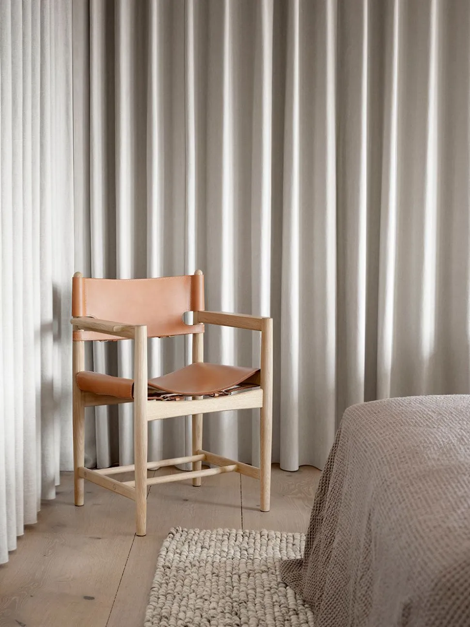 Der Spanische Stuhl“, entworfen von dem bekannten Børge Mogensen, ist ein Synonym für dänisches Design und gilt als eines der ikonischsten Möbelstücke in der Geschichte der dänischen Möbelarchitektur. Sein einzigartiger Charakter hat einen internationalen Status erreicht, der sich in einige der größten und luxuriösesten Häuser der Welt einfügt und dazu beigetragen hat, Børge Mogensen und nicht zuletzt das dänische Design auf der Weltkarte zu verankern.