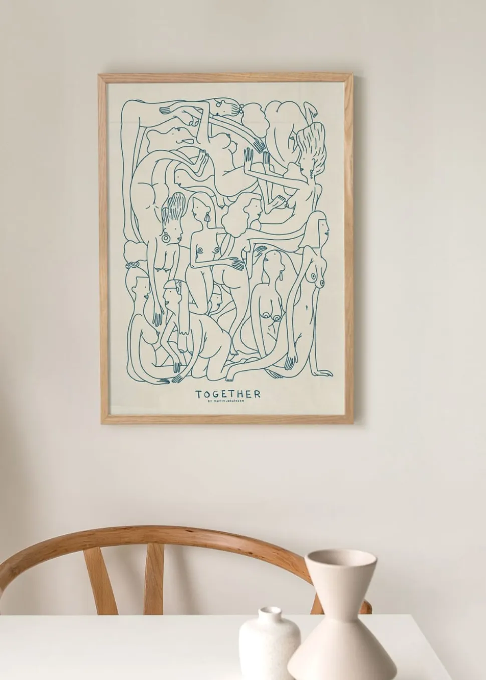 Das Poster ist ein illustriertes Poster mit einzigartigen Formen und Details. Das Together-Poster verdeutlicht unsere einzigartige Vielfalt im menschlichen Körper. Die ästhetischen Details des Plakats heben die kreativen Grundformen hervor. Das Poster ist eine einzigartige und minimalistische Wahl für Ihre Inneneinrichtung.