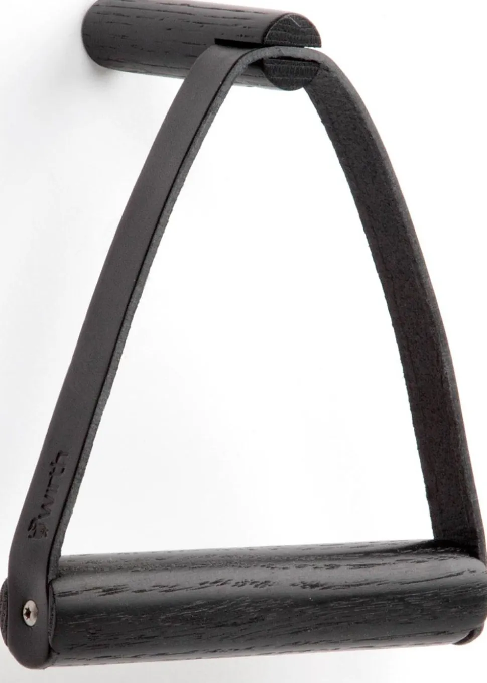Toilettenpapierhalter ist ein schöner Toilettenpapierhalter von . Der Halter ist aus nordischer Eiche und Leder gefertigt. An einem Ende des Holzstabs befindet sich ein Schaltknopf, über den das Lederband gekippt wird, um die Toilettenpapierrolle zu wechseln.
