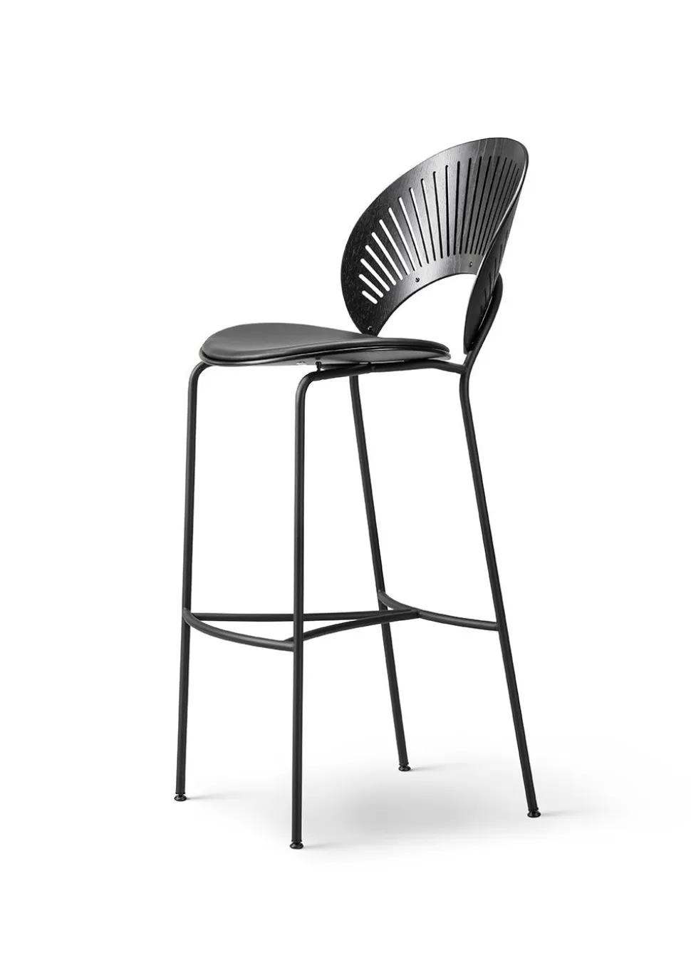 Der Stuhl ist mit einer Sitzfläche ausgestattet, die den Charakter des Stuhls in Form von gefrästen „Lebkuchen“-Formen trägt, die mit einer CNC-Frästechnik hergestellt wurden, die zu dieser Zeit eine Offenbarung für die Möbelarchitektur darstellte. Wie die Gebäudefassaden in Trinidad fordert der Stuhl das Wechselspiel von Licht und Schatten heraus, das je nach Blickwinkel des Betrachters seinen Charakter verändert. Obwohl die einzigartigen Ausschnitte im Mittelpunkt des Designs standen, ging keine Kompromisse beim Komfort ein. Die Schale ist in einer abgerundeten Kegelform gestaltet, die die natürlichen Kurven des Körpers umarmt und so ein beeindruckendes Sitzerlebnis ermöglicht, das sich nicht nur an den Raum, sondern auch an den Menschen anpasst. Bei den Modellen 3400 und 3401 wird der Stuhl durch ein hohes Gestell ergänzt, das den Stuhl auf eine neue Ebene hebt und sich ideal für die Kücheninsel, die Bar oder einen hohen Bürotisch eignet.