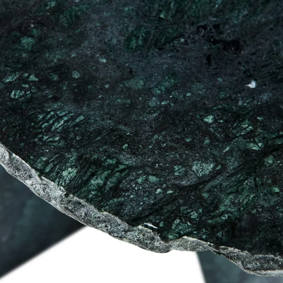 Der schöne Beistelltisch aus Verde-Marmor ist aus dunkelgrünem Marmor gefertigt. Die rustikalen Kanten des Beistelltisches symbolisieren, wie der Marmor aus dem Berg gehauen wurde. Die rustikale Kante verleiht dem Beistelltisch einen maskulinen und robusten Look.