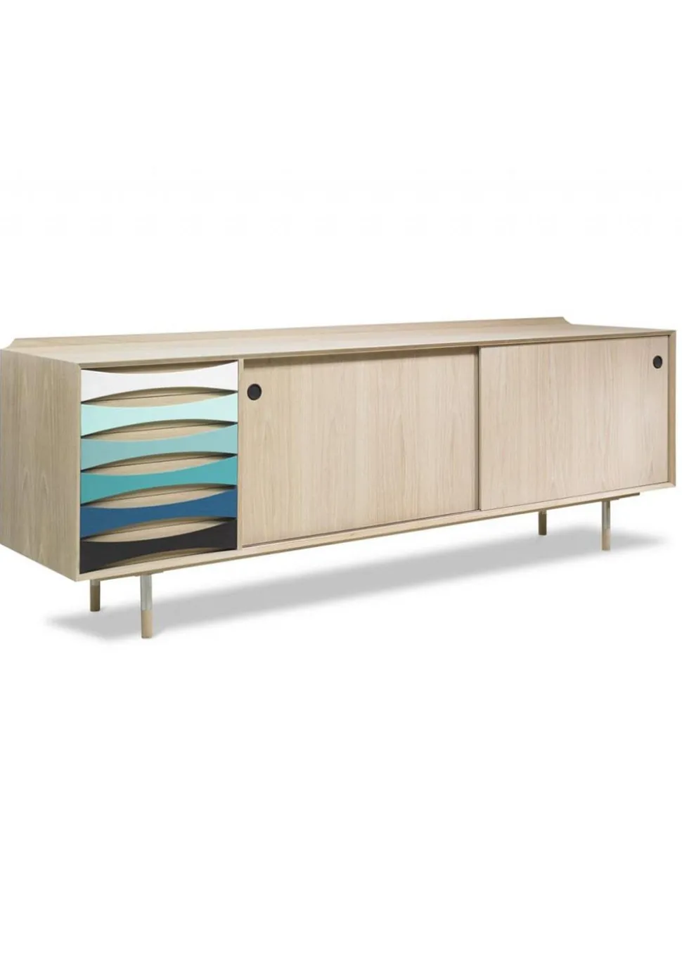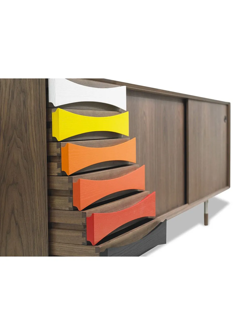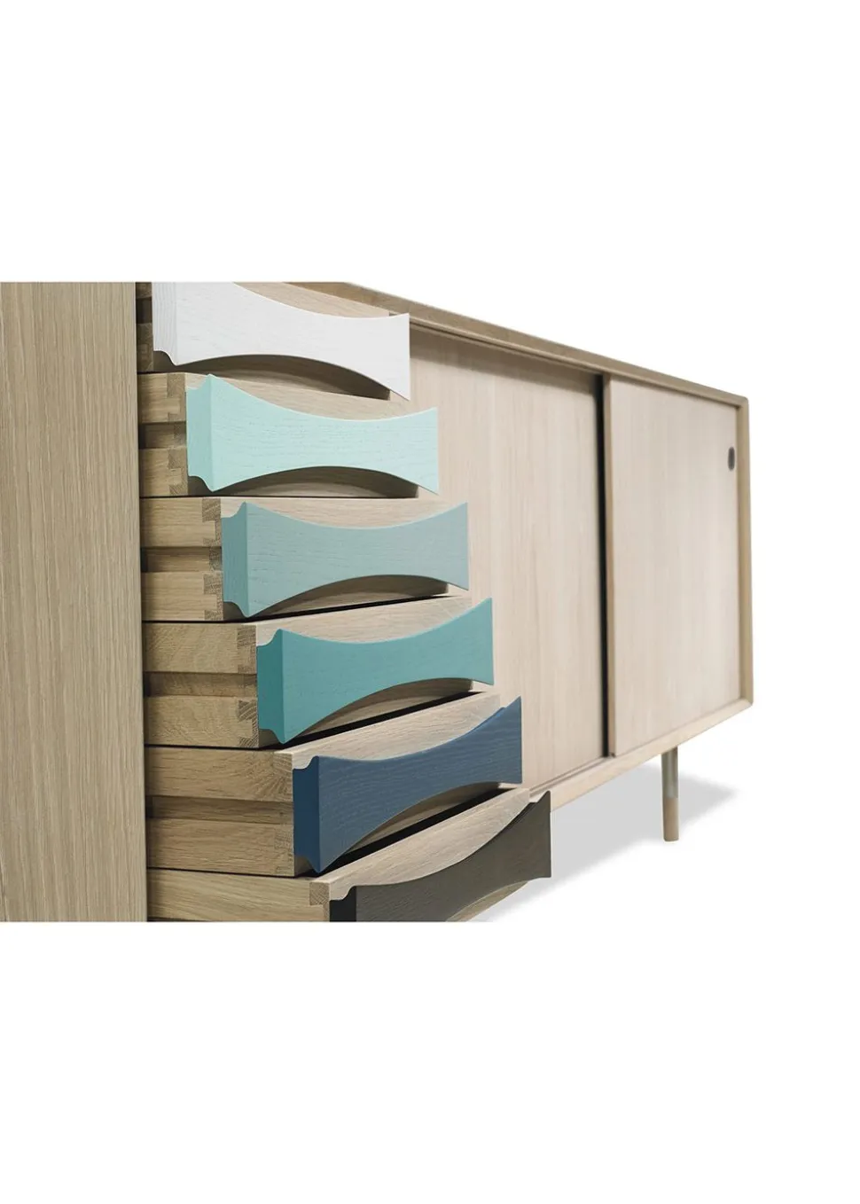Schubladen können ohne Mehrkosten aus Holz wie der Rest des Korpus gefertigt oder in einer roten oder blauen Farbskala lackiert werden. Wenn Sie diesen Artikel bestellen, werden Sie von unserem Webshop-Team kontaktiert, um mehr Details über die Wahl der Schubladen für dieses Möbelstück zu erfahren.
