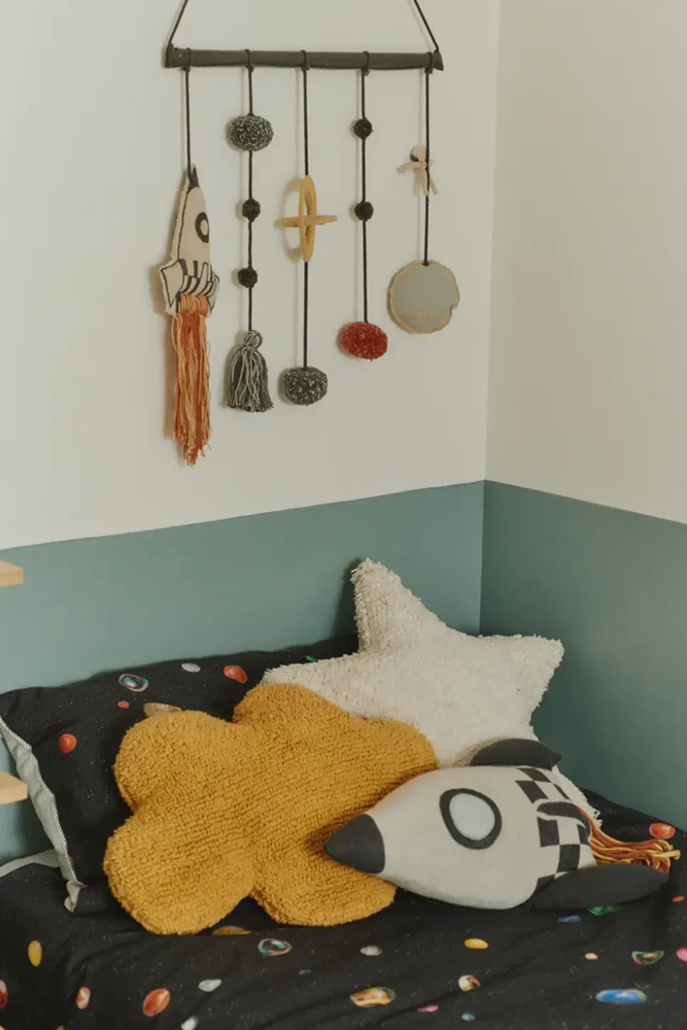 Der funktionelle und stilvolle WANDHÄNGER COSMOS ist nicht nur eine schöne Dekoration – die kleinen Taschen bieten Platz für Spielzeug, Bücher oder andere kleine Gegenstände. Perfekt, um Ordnung zu schaffen und eine gemütliche Ecke zu gestalten. Kombinieren Sie ihn mit anderen Textilien von , um ein komplettes, spielerisches Universum zu schaffen, in dem Ihr Kind frei erkunden und träumen kann.