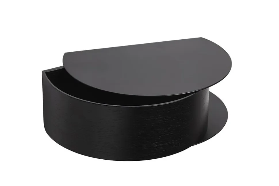 Wallie Shelf ist eine runde Wandschublade mit Metallbeschlägen, die sich gut in jeden Raum einfügt; als Nachttisch oder für Schlüssel. Das Wallie-Regal wurde von Amalie Skov Rahbæk entworfen.