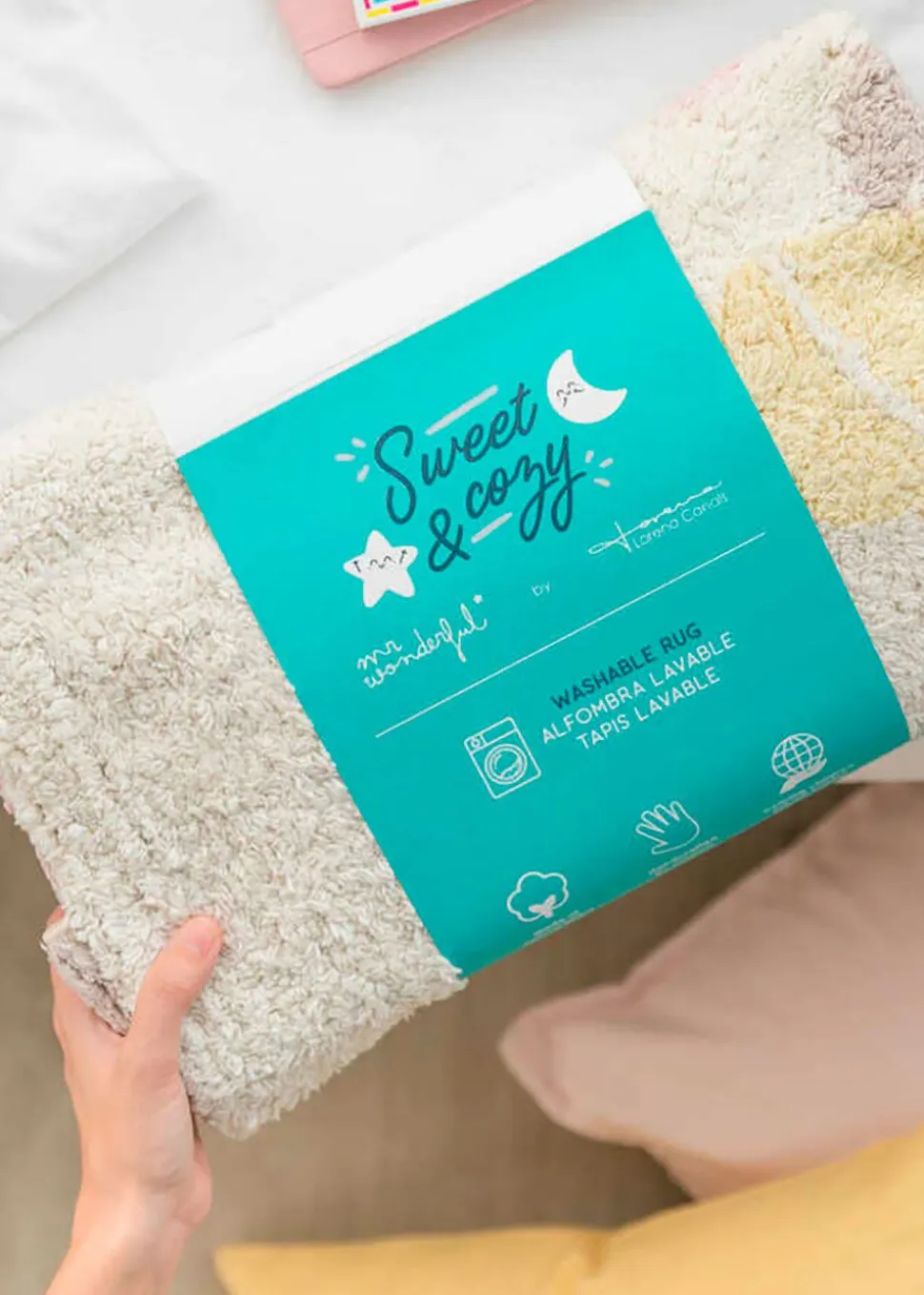 Dieser Teppich ist mehr als nur eine Dekoration – er ist auch ein Freund, der Freude in Ihren Alltag bringen wird. Wenn Sie diesen Teppich einmal haben, werden Sie sich nicht mehr vorstellen können, ohne ihn zu leben. Das Produkt ist Teil der Sweet & Cozy-Serie.
