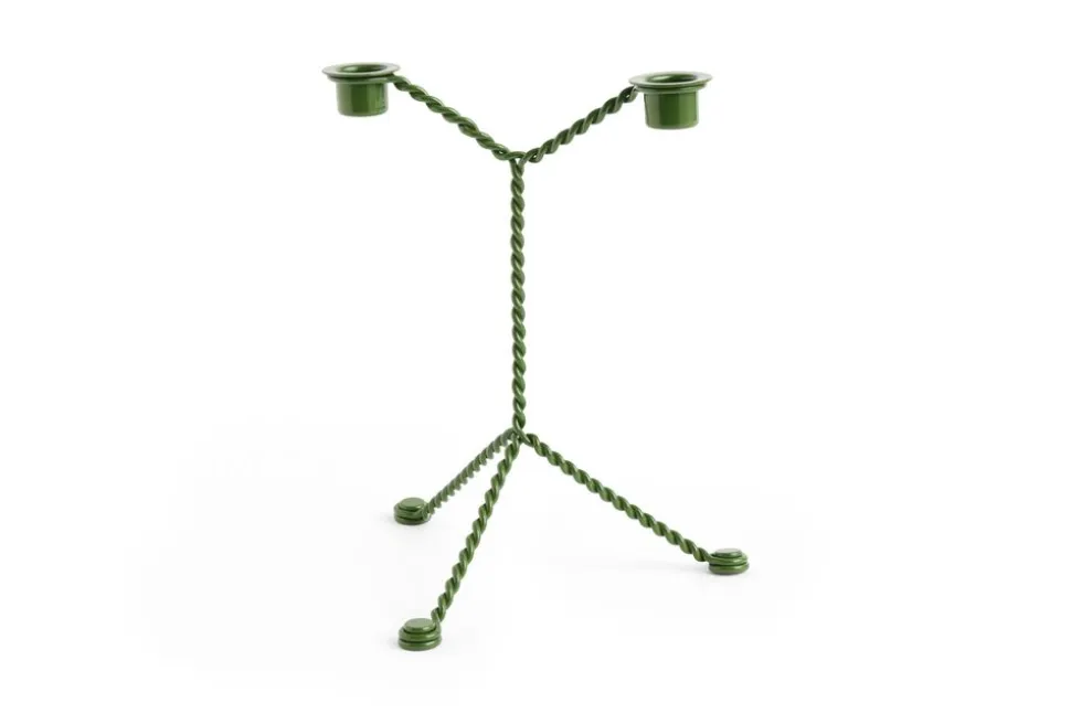 Der Wire Candleholder von , entworfen von Chris Kabel, ist eine raffinierte Interpretation des klassischen Kerzenständers. Aus einem einzigen Stück gedrehtem Stahldraht gefertigt, ist dieser doppelte Kerzenleuchter sowohl minimalistisch als auch funktional. Die beiden Kerzenhalter balancieren anmutig auf den drei abgeschrägten Beinen und sorgen für einen leichten und eleganten Look. Mit seiner Vielseitigkeit und den verschiedenen Farbvarianten verleiht der Wire-Kerzenhalter jedem Raum einen modernen Touch.
