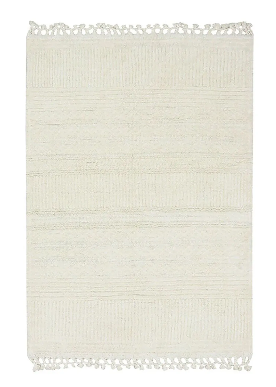 Der Woolable Rug Ari von ist ein schöner und praktischer Teppich. Der Teppich ist ein Kunstwerk für sich, da er verschiedene Tufting-Techniken kombiniert, um eine weiche, vielschichtige Oberfläche zu schaffen, die eine Freude für das Auge ist und sich gut anfühlt, wenn man darauf läuft.