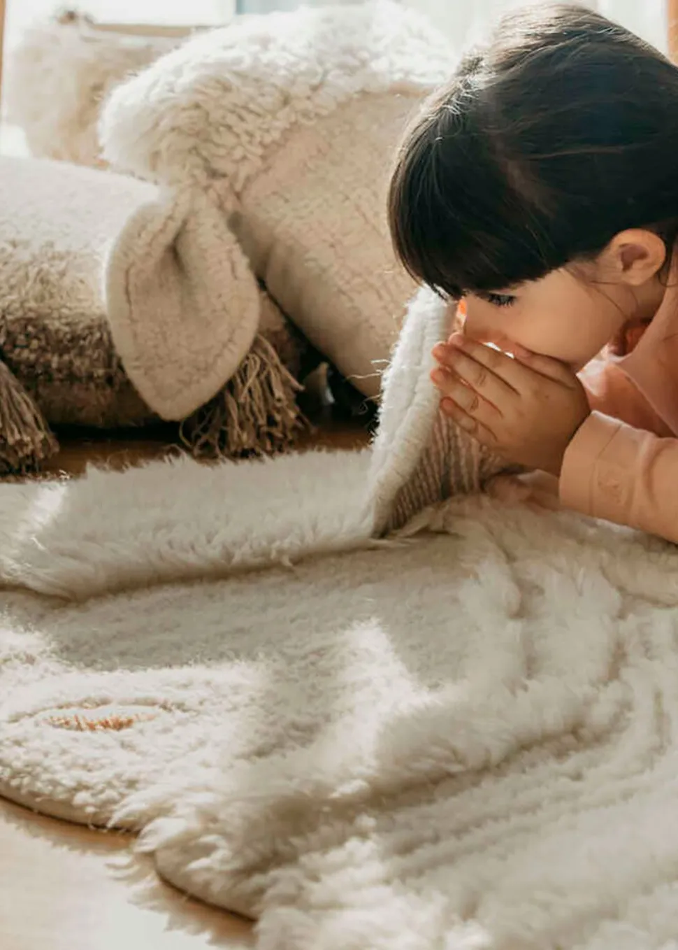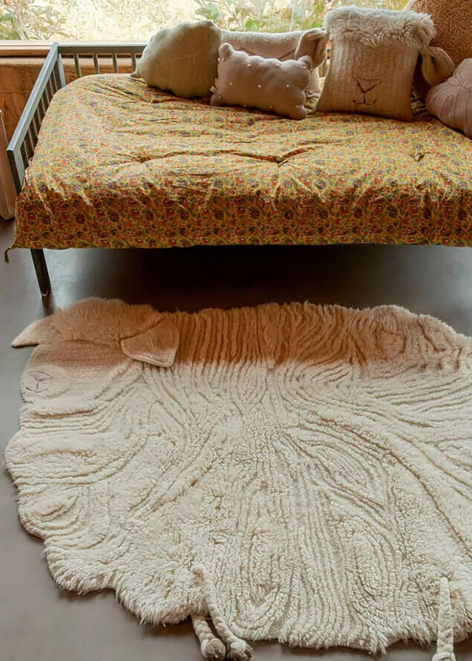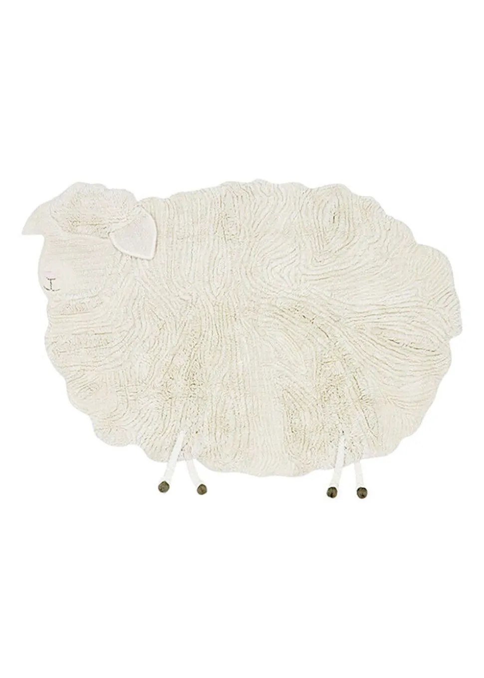 Woolable Rug Pink Nose Sheep von ist ein niedlicher und weicher Kinderteppich. Der Teppich soll ein niedliches Schaf darstellen, mit großen Ohren und kurzen Beinen. Der Teppich setzt einen lustigen Akzent in jedem Kinderzimmer. Der Teppich ist handgefertigt aus 100% natürlicher Wolle und ist sowohl weich als auch langlebig. Das Beste daran ist, dass er in der Maschine gewaschen werden kann und somit leicht zu reinigen ist. Der Teppich ist Teil der Serie Pink Nose Sheep.