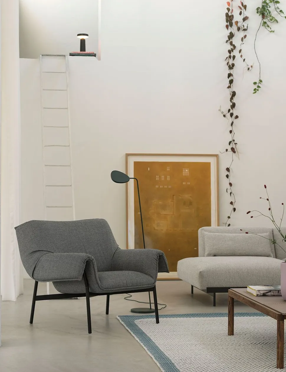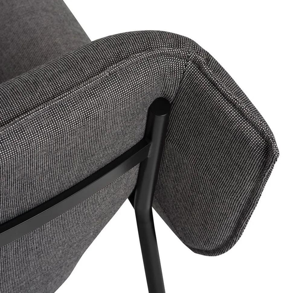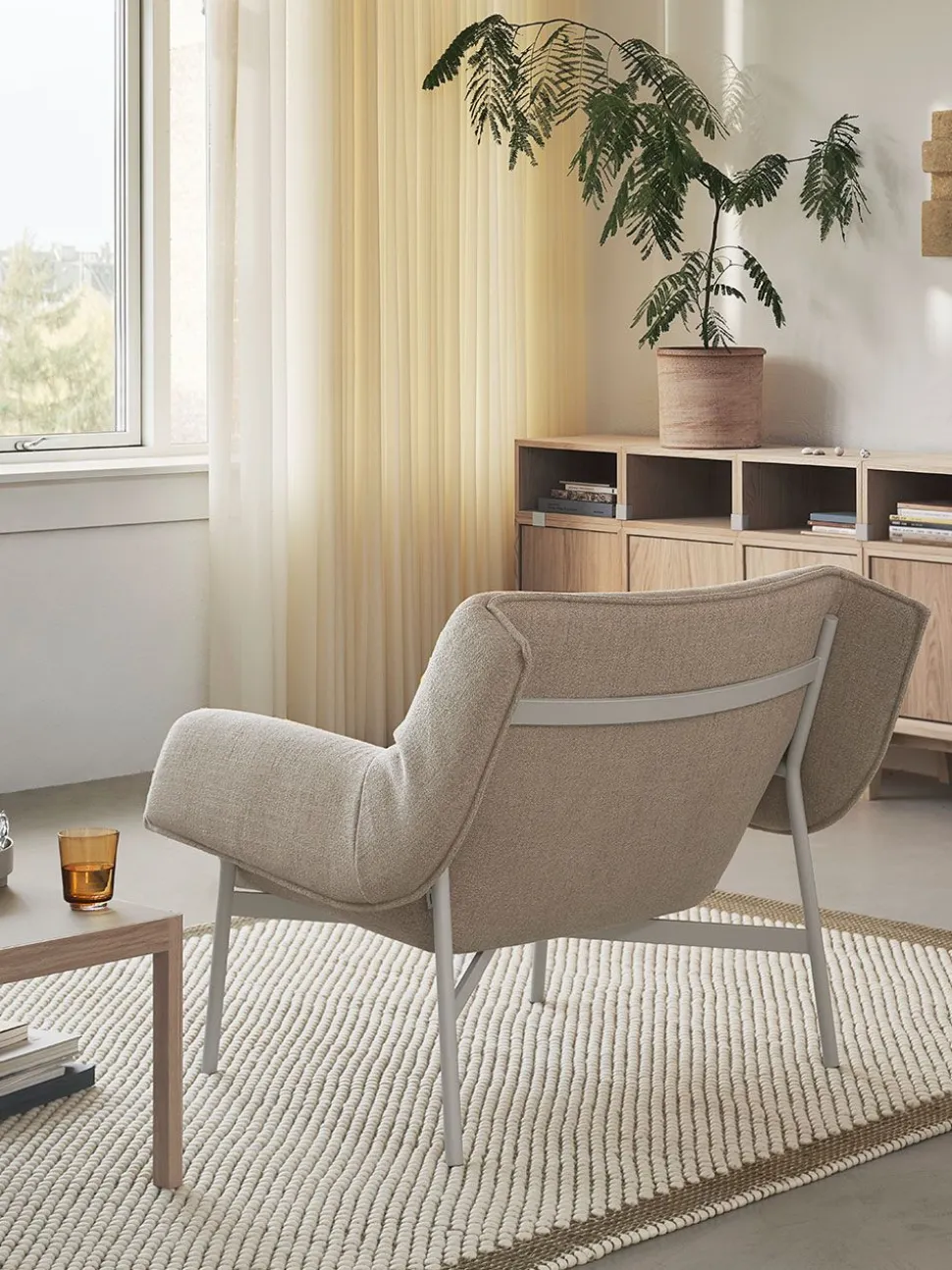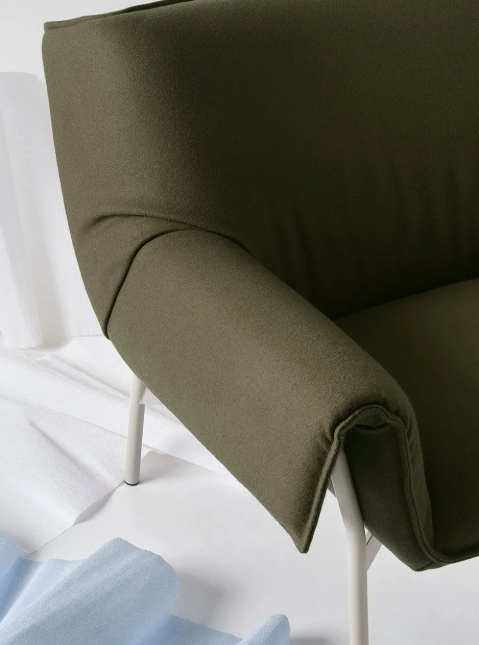 Der weiche und schlichte Wrap Lounge Chair wurde von Normal Studio im Jahr 2023 entworfen. Das Gestell des Sessels besteht aus pulverbeschichtetem Stahl, der dem Stuhl einen eleganten und leichten Look verleiht. Der teppichähnliche Stoff, der die Schale des Sessels umgibt, bietet einen angenehmen Komfort und eine gute Haltbarkeit. Die Kombination aus der luftigen Basis und der bequemen Schale des Wrap Lounge Chair schafft eine starke Designsprache, die sich ideal für das Wohnzimmer oder für größere Räume eignet.