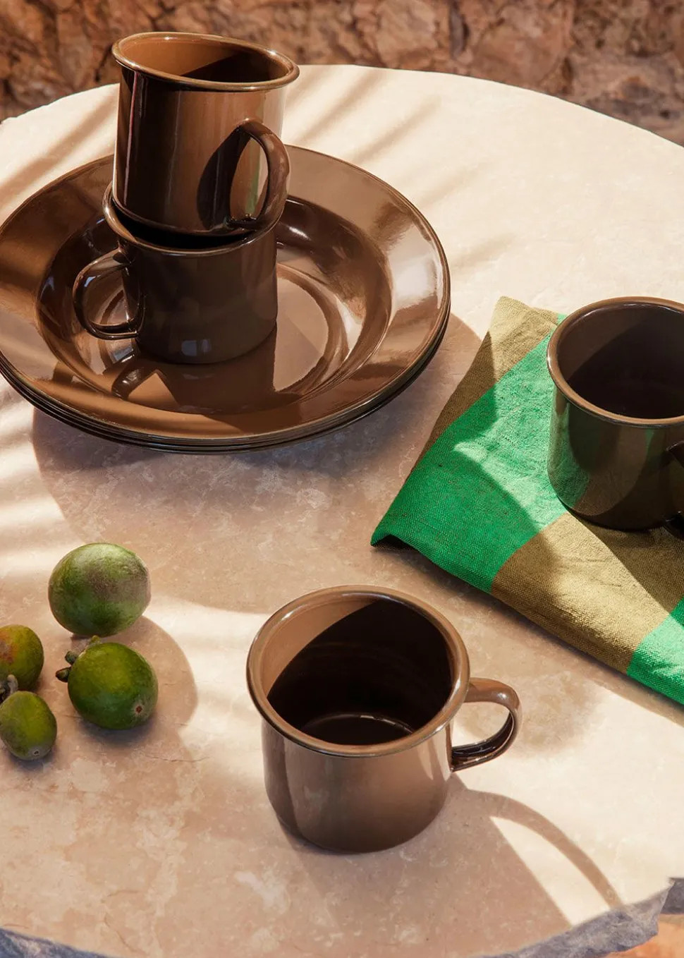 Das schöne Emaille-Set von ist ein Muss für den nächsten Picknick-Ausflug. Das Set besteht aus vier Tellern und vier Bechern.