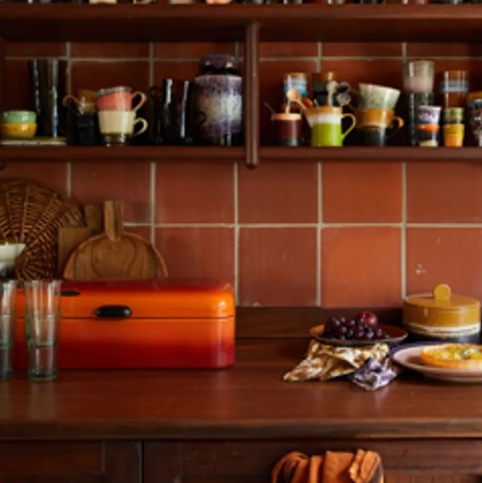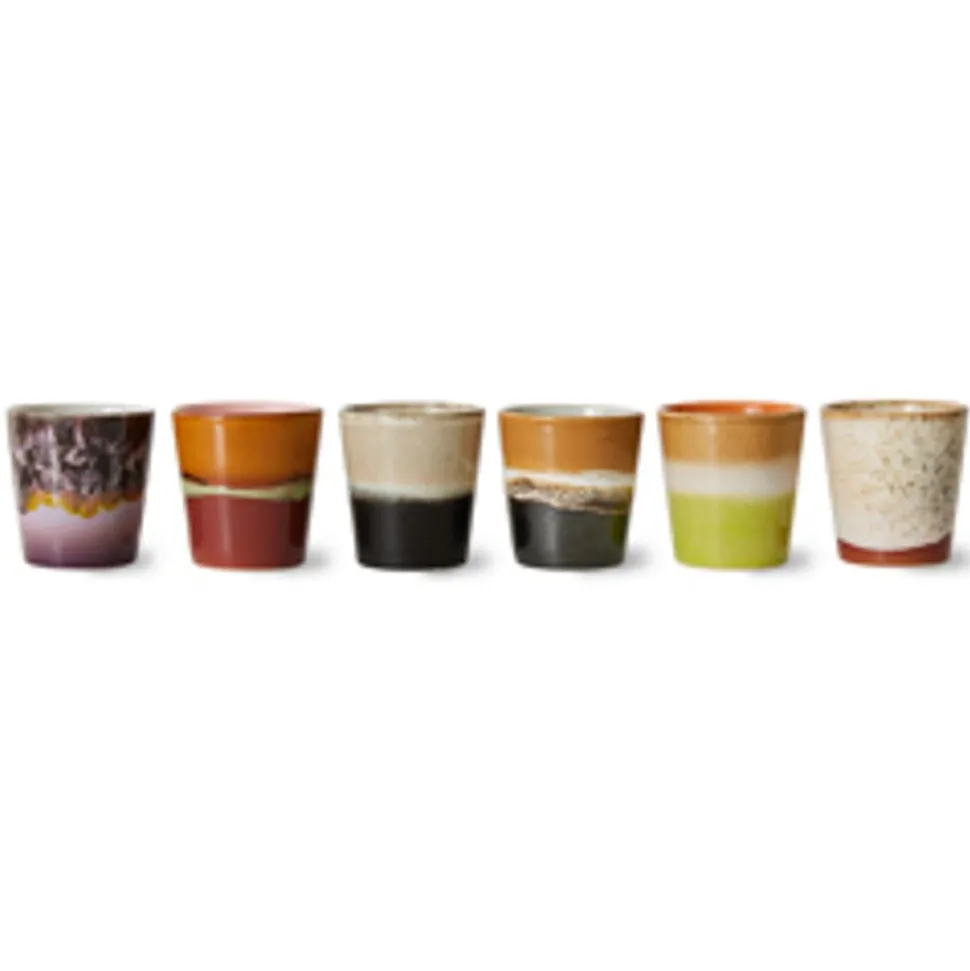 70s Coffee Mug von HK Living ist ein Set von schönen Kaffeetassen in verschiedenen Farben und Mustern. Die Tassen sind perfekt für eine leckere Tasse Kaffee. Die 70er-Jahre-Kollektion ist eine Mischung aus modernen Pastellfarben und dem Retro-Look, der in einer Tasse wiedergegeben wird. Das gesamte 70er-Sortiment wird aus handgefertigtem Steingut hergestellt, was dazu beiträgt, dass Farbe und Muster variieren und jede Tasse ein Unikat ist.