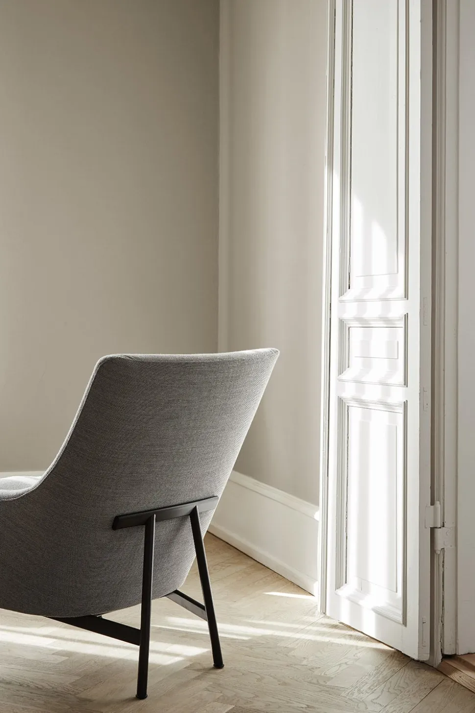Jens Risoms „A-Chair“ ist ein perfektes Beispiel für seine skandinavisch-amerikanischen Entwürfe, die auf einer Philosophie stromlinienförmiger Formen und bescheidenen Komforts beruhen. Jens Risom gehörte zur goldenen Generation von Designern der dänischen Moderne, die sich durch außergewöhnliche Qualität in der Ausführung und bei den Materialien auszeichnete und gleichzeitig mit dem visuellen Ausdruck experimentierte. Die Schale des Stuhls besteht aus einer Kombination aus stromlinienförmigen und organischen Kurven mit einer Neigung, die dem Stuhl ein klassisches Lounge-Gefühl verleiht. Das Gestell ist aus kontrastierendem, schwarz lackiertem Stahl gefertigt, die Stuhllehne ruht auf der charakteristischen, a-förmigen Rückenlehne. Ursprünglich ein praktisches Merkmal, ist die Rückenlehne heute das charakteristische Detail des Stuhls.