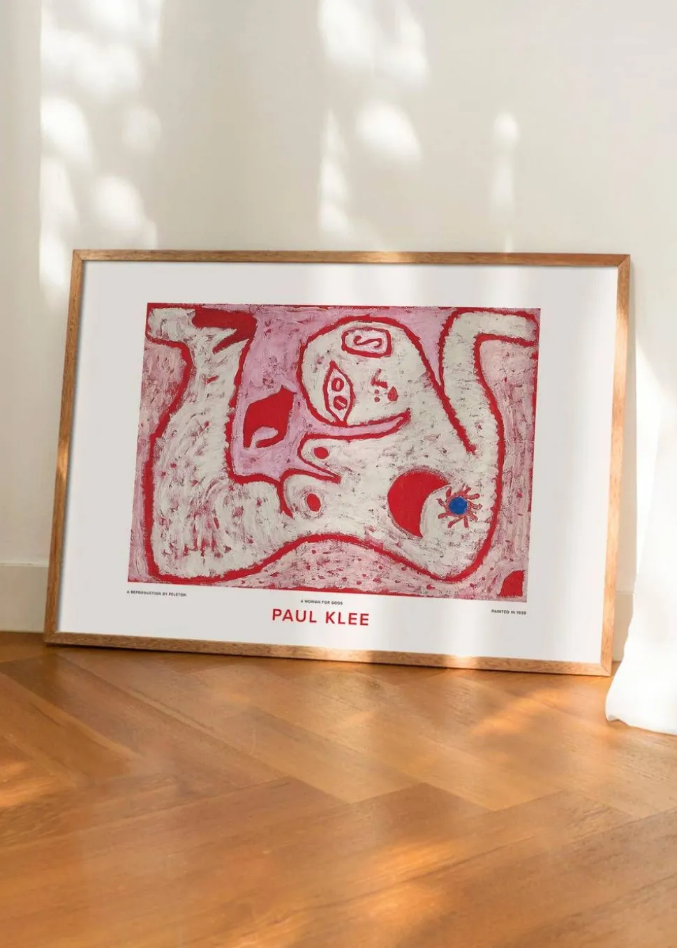 Das Poster ist ein abstraktes, illustriertes Poster mit schönen warmen Rottönen. Paul Klees einzigartige, farbenfrohe und abstrakte Kunstplakate zeichnen sich durch seine einfallsreichen und eleganten Techniken aus. Die ebenso schönen wie eleganten rötlichen Details schaffen eine gemütliche Atmosphäre für Ihr Zuhause.