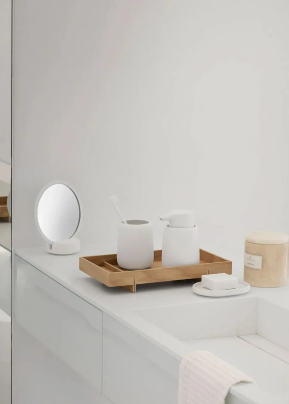 DasABENTO-Tablett wurde mit Blick auf Komfort und Funktionalität entworfen. Die beiden Füße, die das Tablett zieren, sind nicht nur dekorativ, sondern auch ein geniales Merkmal, das das Greifen des Tabletts unglaublich einfach macht. Diese Füße erstrecken sich über das Tablett und bilden gleichzeitig drei separate Abschnitte, die die Ablagefläche unterteilen. Diese clevere Aufteilung sorgt dafür, dass Sie Ihr Hab und Gut optimal organisieren können.