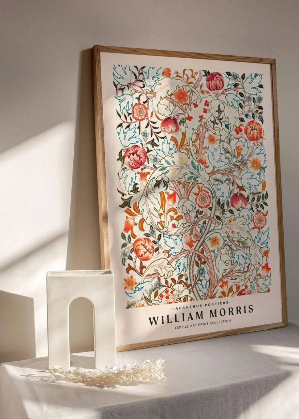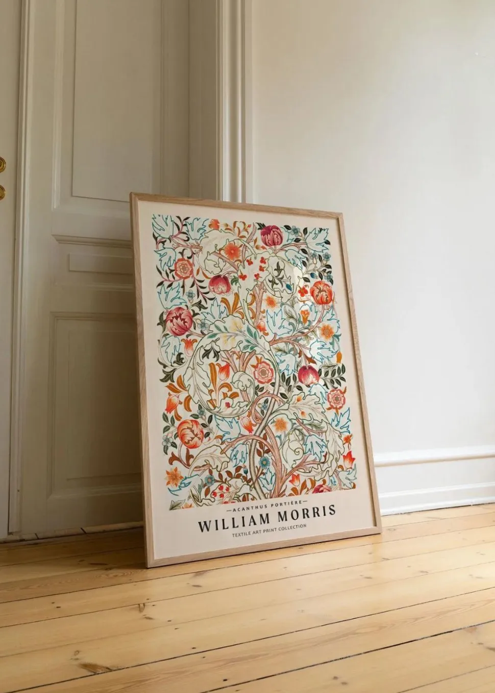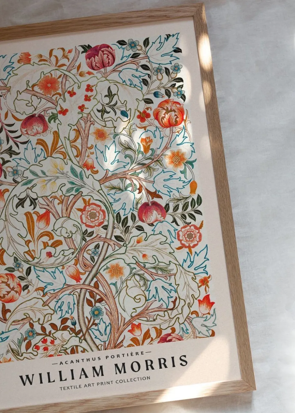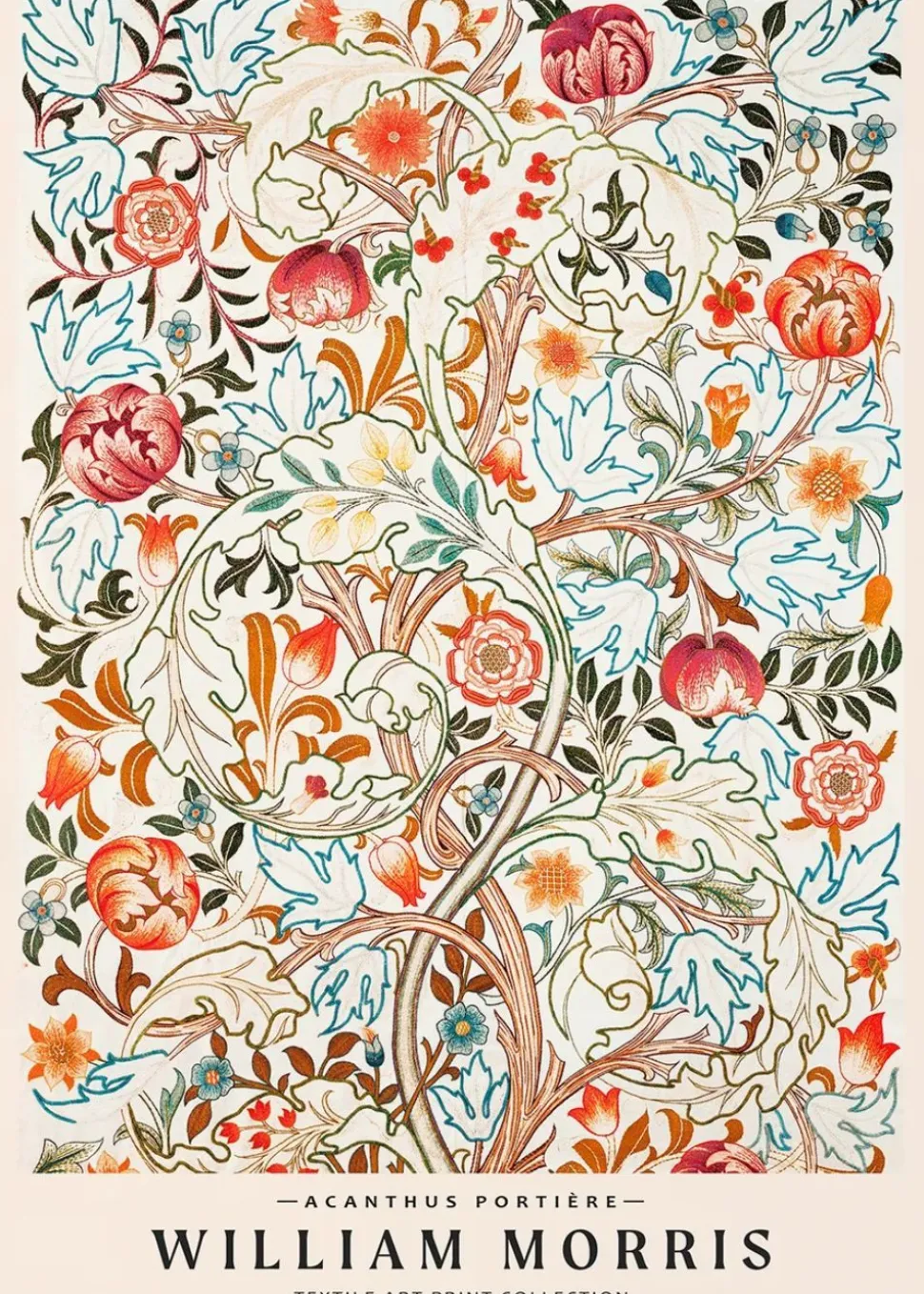 Acanthus portière wurde von dem Künstler William Morris entworfen. Dieses Plakat ist eine schöne Mischung aus historischer Eleganz und modernem Minimalismus. Die detaillierte Illustration des Plakats soll an einen schönen Garten mit bunten Blumen erinnern und ein Gefühl von Leben vermitteln.