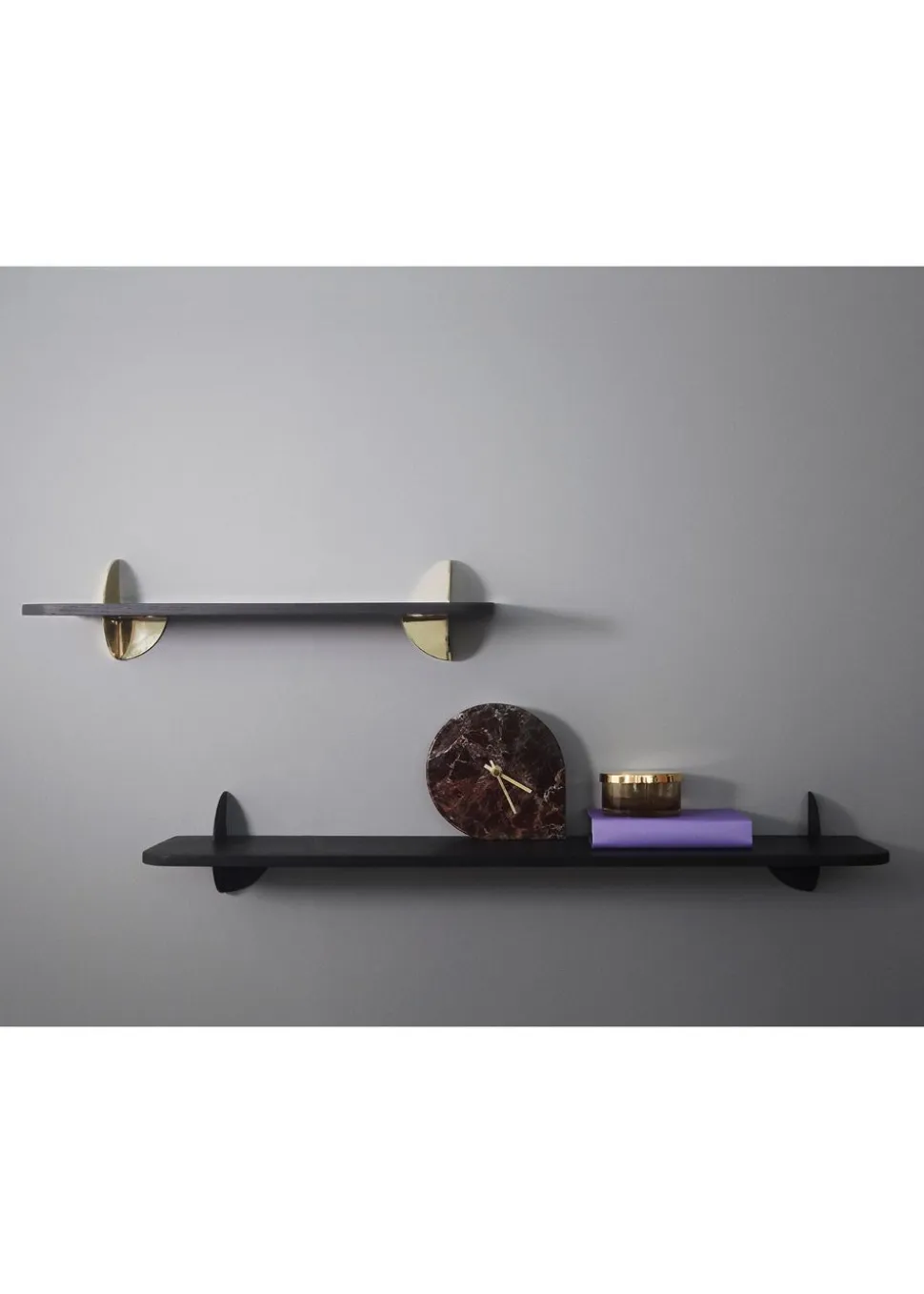 AEDES Regale von Danish sind eine wunderschöne Serie von Regalen aus köstlichem Nussbaum und Esche, kombiniert mit Gold und pulverbeschichtetem Eisen. Die schönen Matrialien spielen auf klassische und elegante Weise zusammen und machen das Regal zu einem Möbelstück, das in jedes Zuhause passt. Verwenden Sie ihn als Wandtisch im Schlafzimmer oder als Regal, um Ihre Lieblingsgegenstände und Blumen zu verstauen.