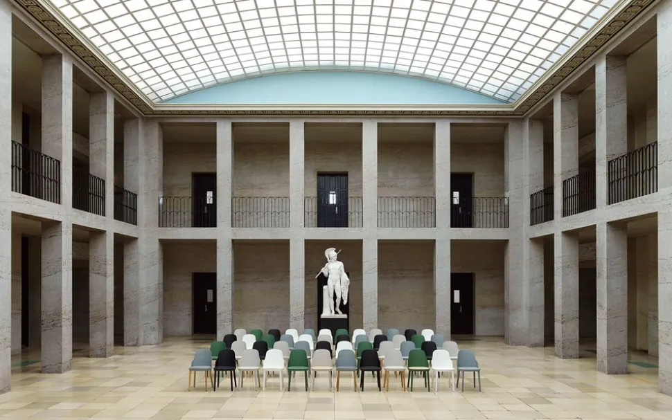Der Allez Stuhl von hat einen leichten und schlanken Look. und das Design betont den Wiedererkennungswert. Die organischen Kurven der Rückenlehne ahmen die Formen des Körpers nach, und der untere Teil wölbt sich entlang des Sitzes, was zusammen mit einer zusätzlichen Verstärkung im Rückenteil für optimale Festigkeit und Sitzkomfort sorgt. Die charakteristischen Prinzipien des Designers, ein ehrliches Design, das auf die Bedürfnisse der Zeit abgestimmt ist, haben eindeutig dazu beigetragen, den Allez Stuhl zu formen.