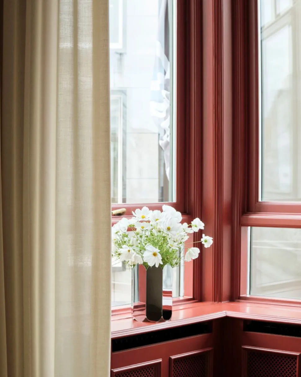 Die Kollektion Arcs wurde vom belgischen Designerduo Muller Van Severen entworfen, das für seine skulpturalen und farbenfrohen Entwürfe bekannt ist, die oft von architektonischen Elementen inspiriert sind. Die Serie zeichnet sich durch ihre einzigartige Komposition aus säulenförmigen Ovalen aus, die vertikal zu einer geometrischen Skulptur zusammengesetzt sind. Diese Figur findet sich in Form von Vasen, Kerzenhaltern und Lampen wieder, die zusammen einen schönen roten Faden in der Wohnung bilden können.