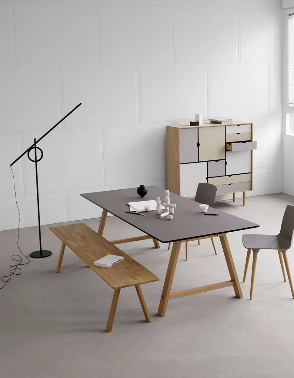 Die klassische und elegante Bank von Andersen wurde vom Andersen Design Team entworfen. Die Bank ist aus weiß pigmentiertem, matt lackiertem Eichenholz mit schönen schrägen Beinen und sichtbaren Stollen gefertigt. Das minimalistische und zeitlose Design der B2-Bank ist perfekt für den Eingangsbereich, das Schlafzimmer oder andere Wohnräume.