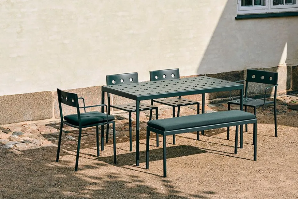 Balcony Table | Large ist ein schlichter rechteckiger Esstisch, der die verschiedenen Esszimmerstühle der Serie ergänzt. Die Größe des Tisches macht ihn perfekt für große Versammlungen und Gartenpartys, wo er in Kombination mit dem Balcony Chair bis zu 8 Personen Platz bietet.